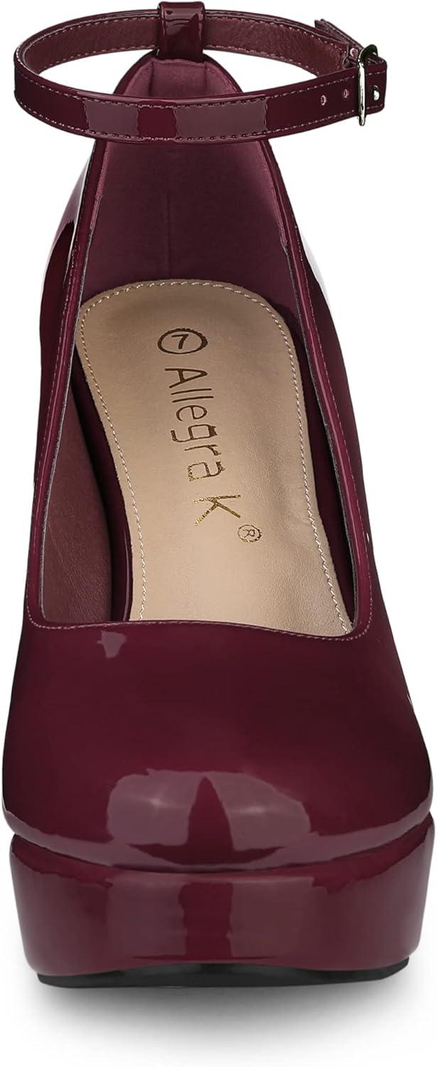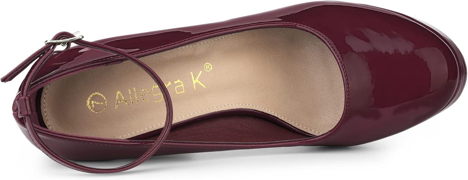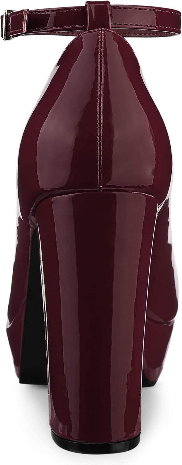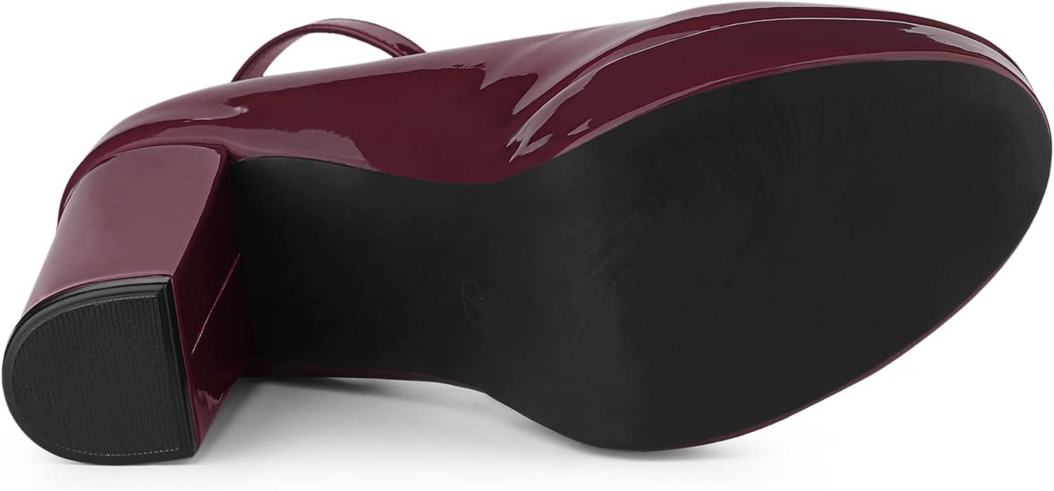 Allegra K Women’s Platform Ankle Strap Chunky Heel Mary Janes Pumps(Burgundy)