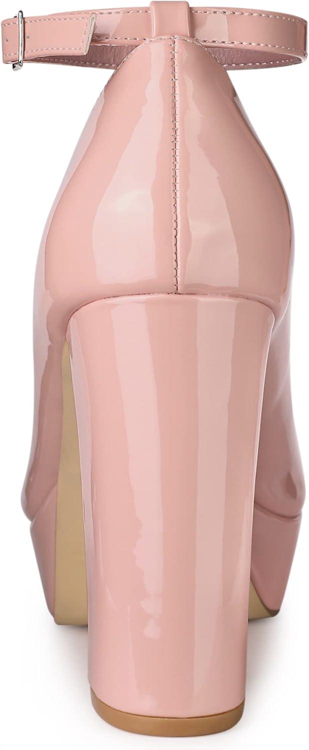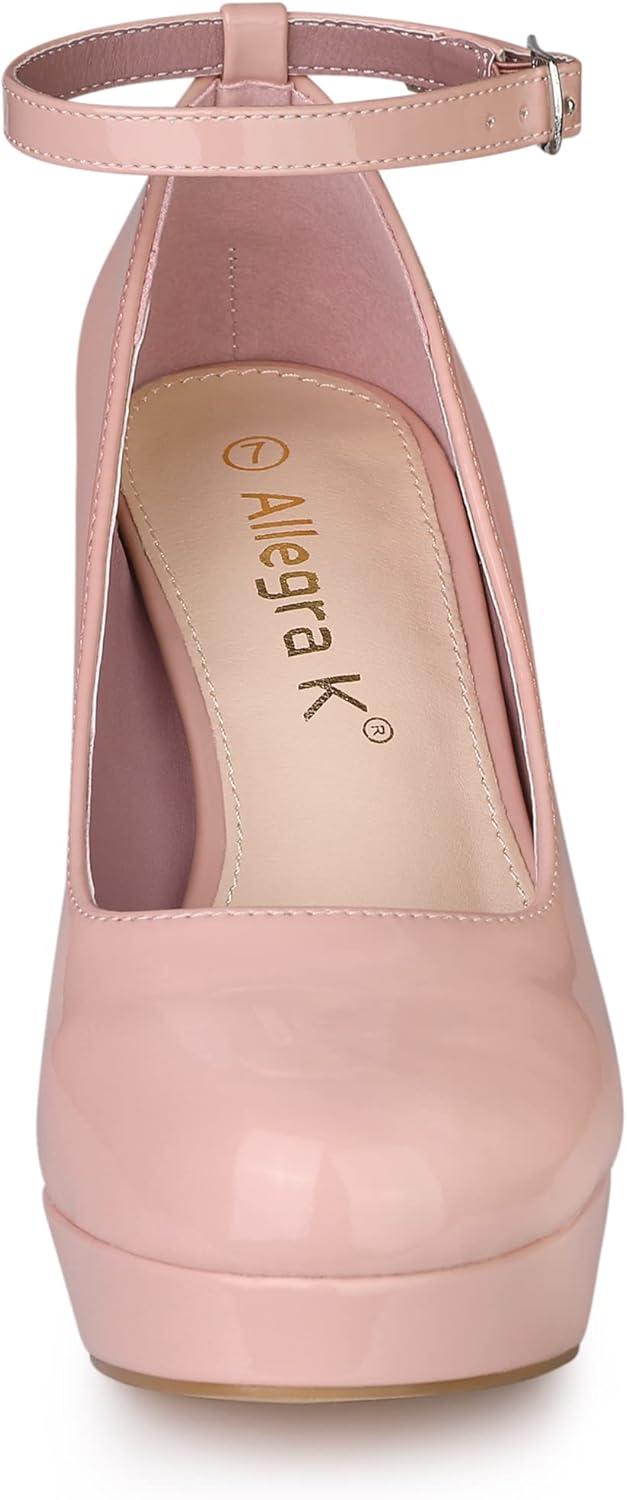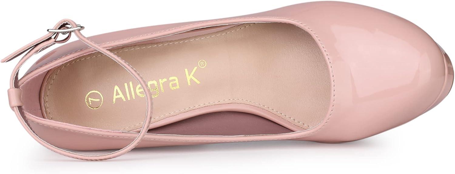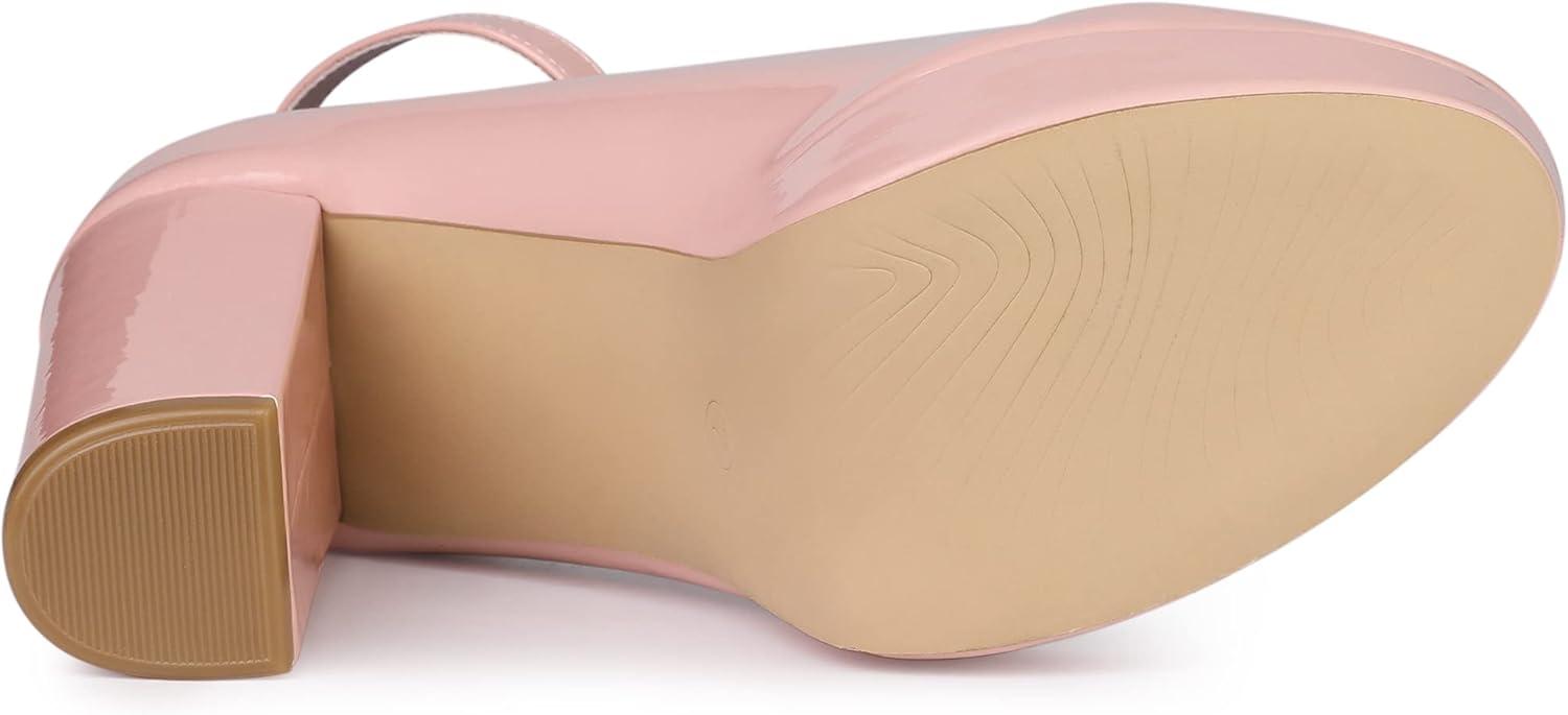 Allegra K Women’s Platform Ankle Strap Chunky Heel Mary Janes Pumps(Pink)