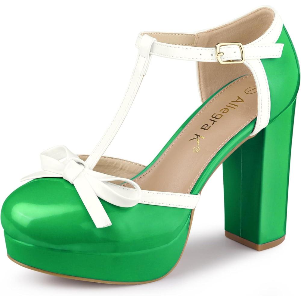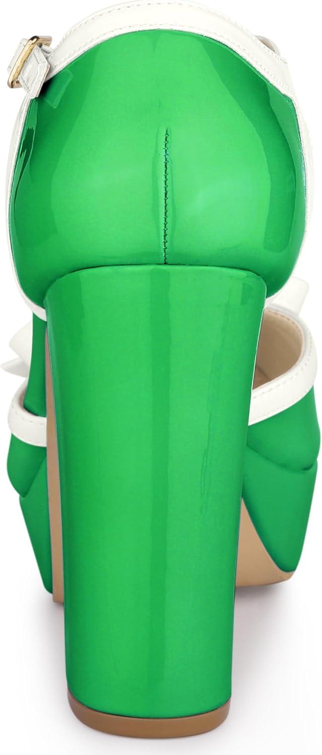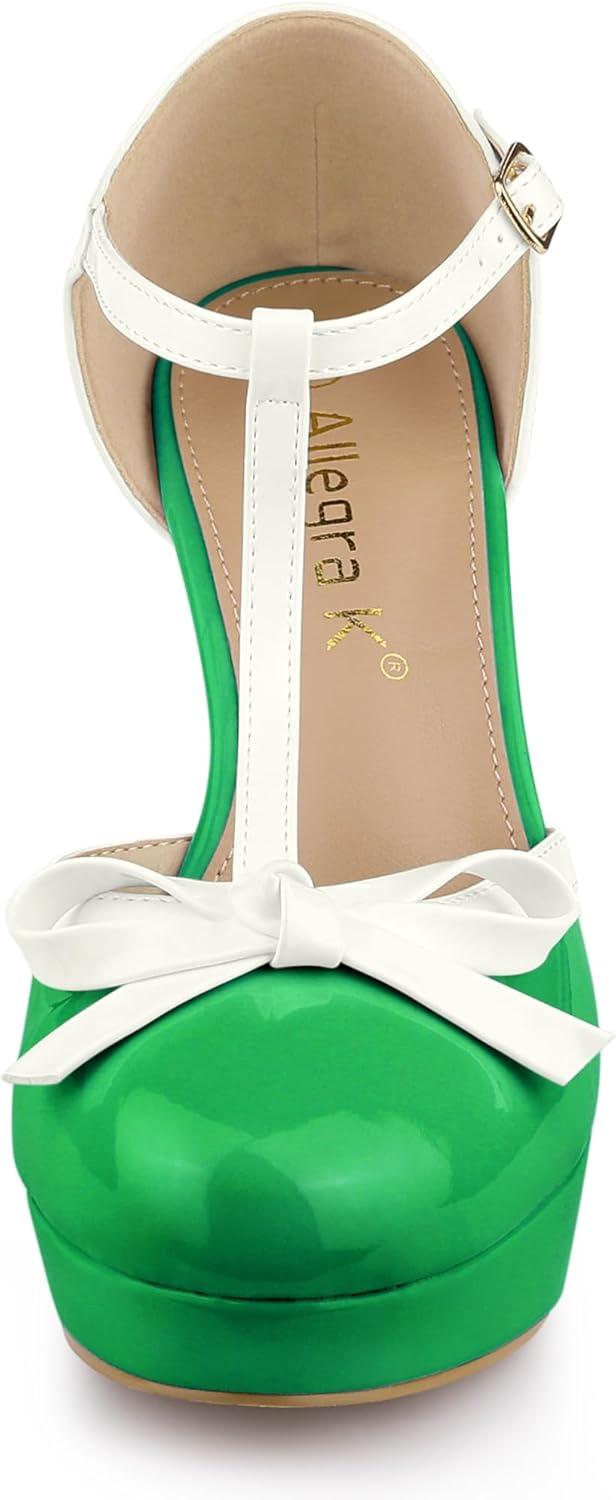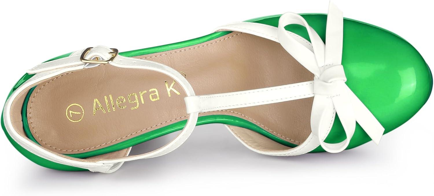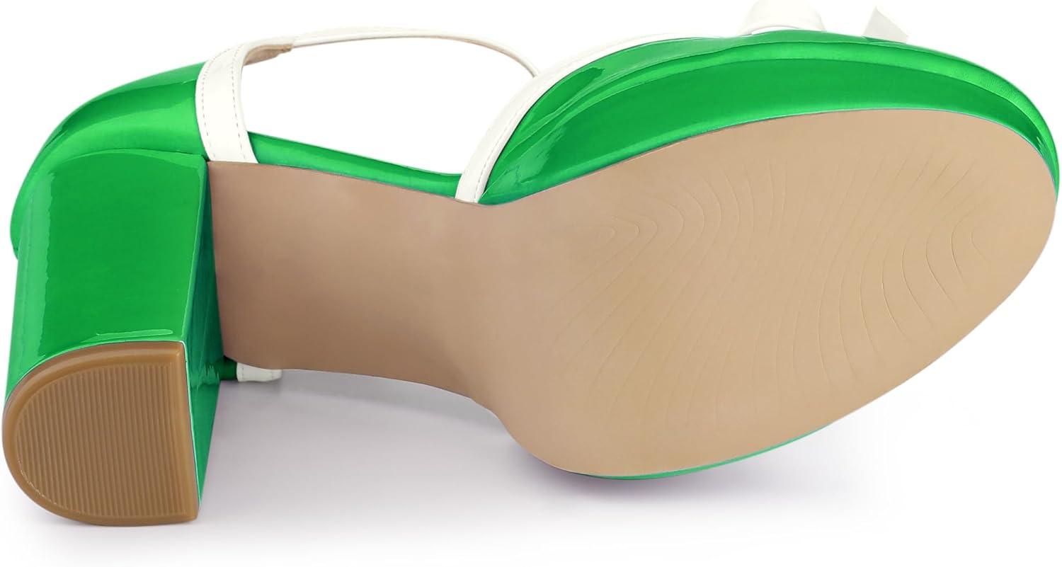 Allegra K Women’s Platform Bow t Strap Chunky Heels Pumps(Lime Green)