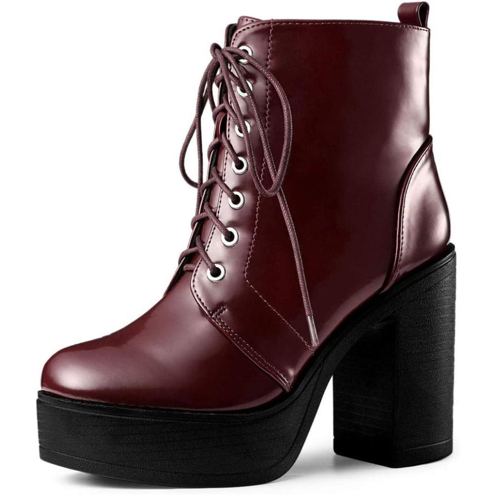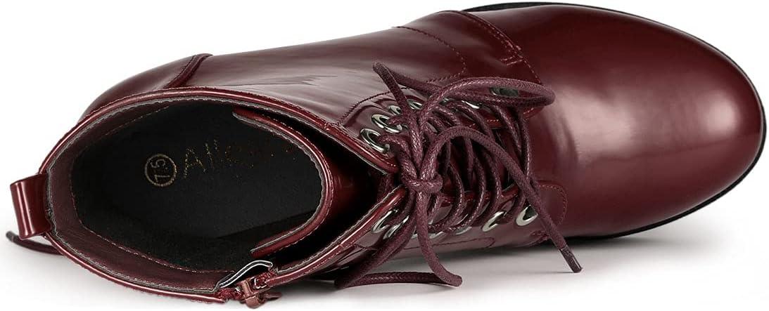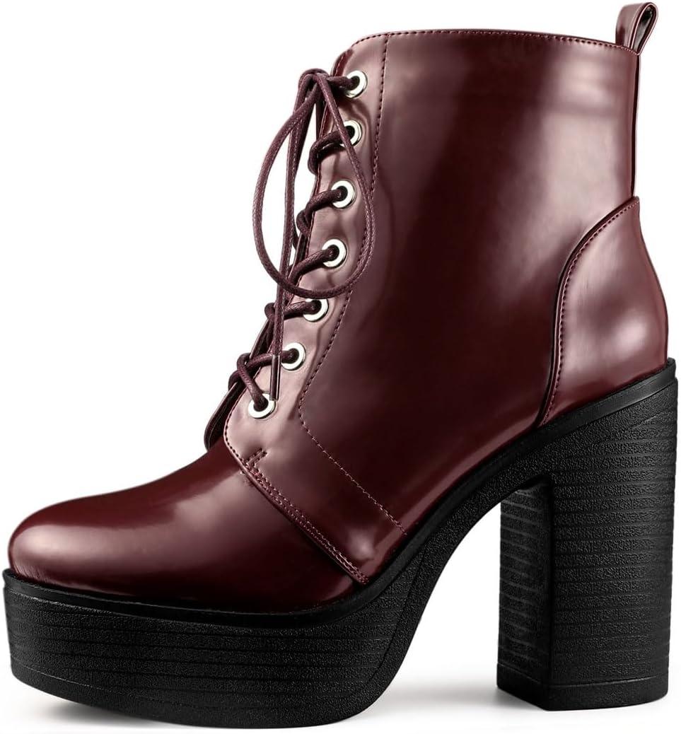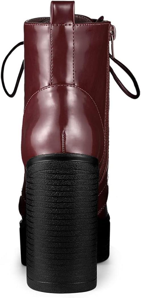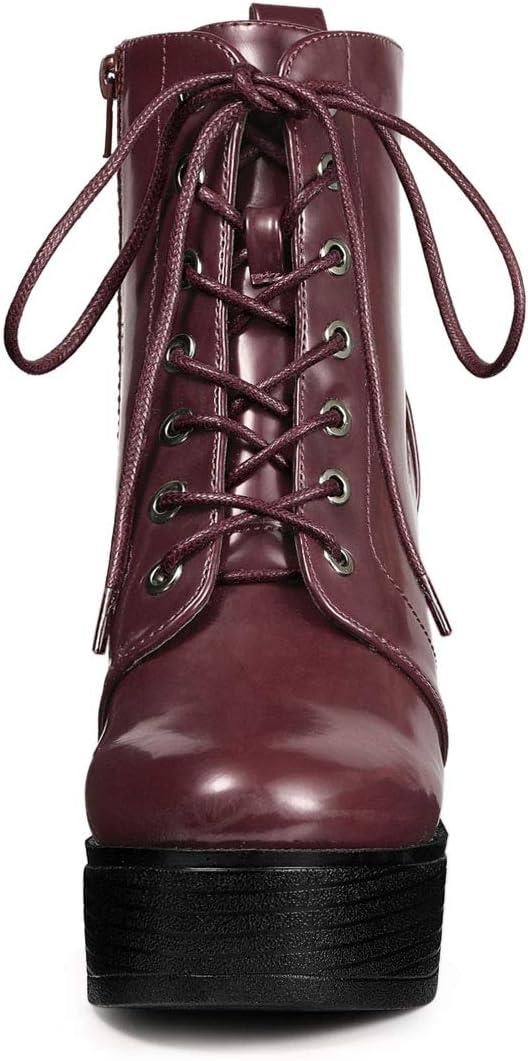 Allegra K Women’s Platform Chunky High Heel Lace Up Combat Boots(Burgundy)