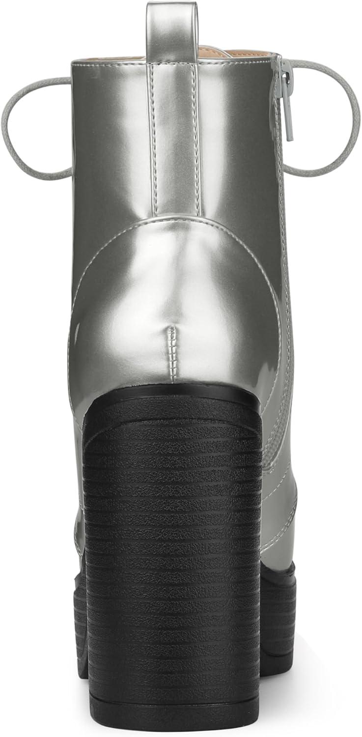 Allegra K Women’s Platform Chunky High Heel Lace Up Combat Boots(Silver)