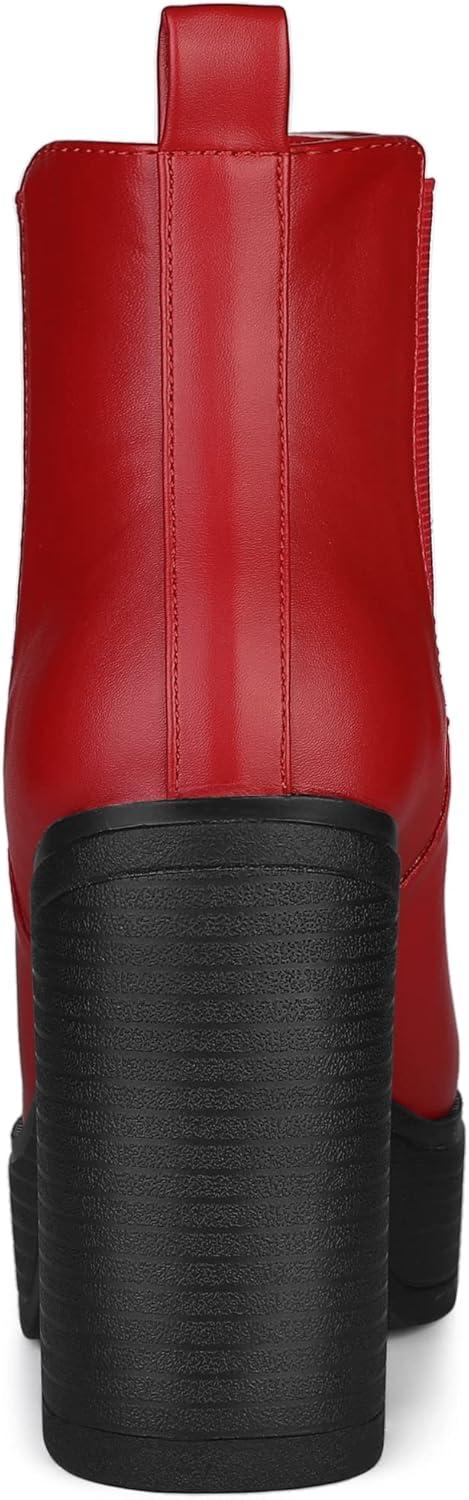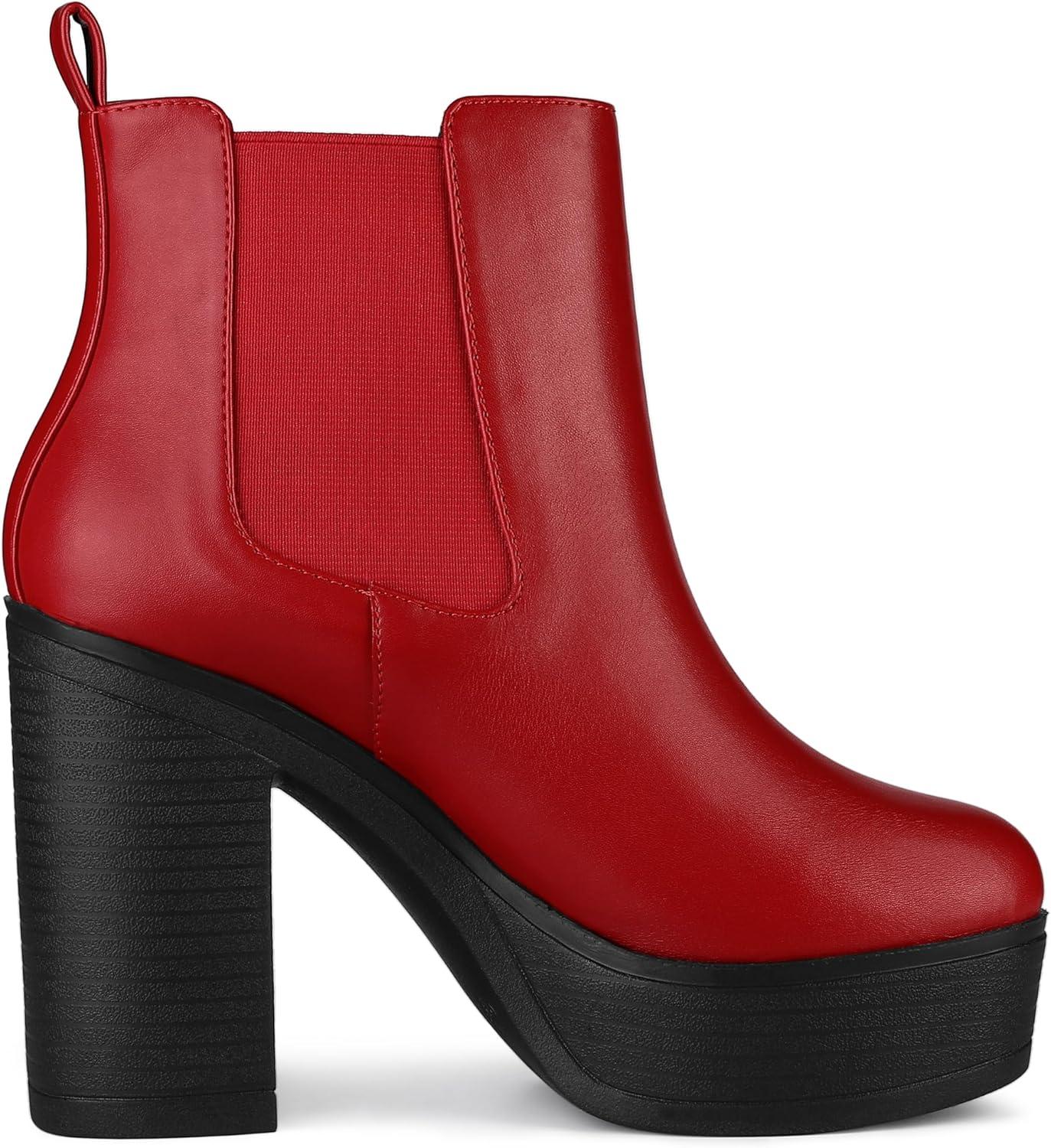 Allegra K Women’s Platform Chunky High Heels Chelsea Ankle Boots(Red)