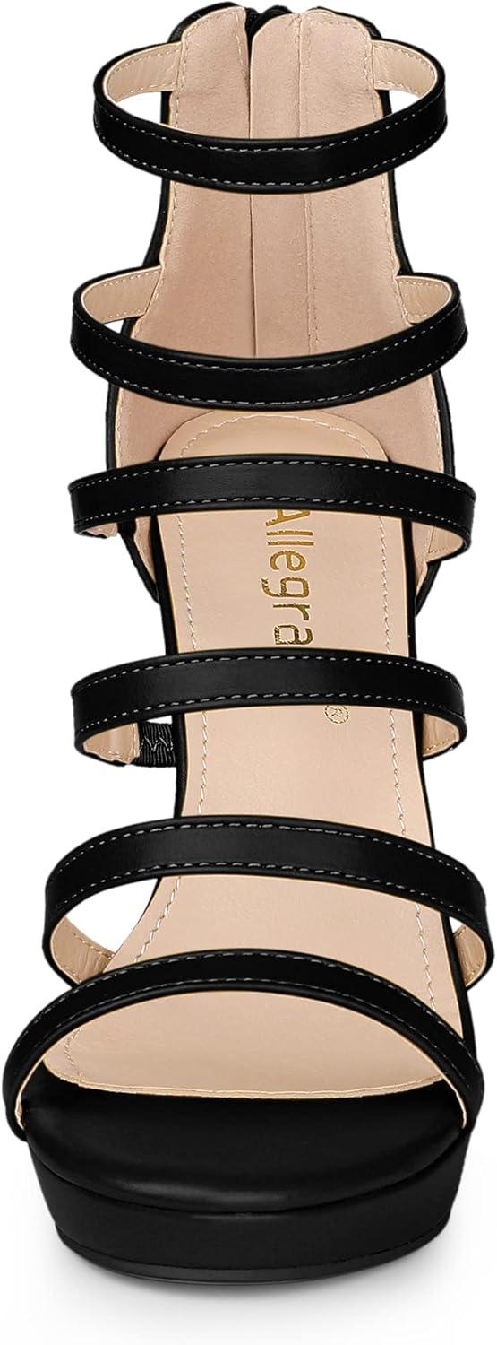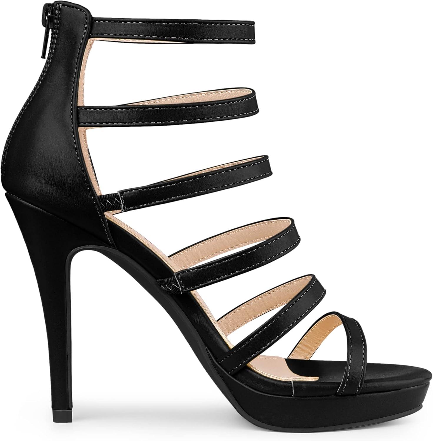 Allegra K Women’s Platform Gladiator Strappy Indianapolis Stiletto Heel Sandals(Black)