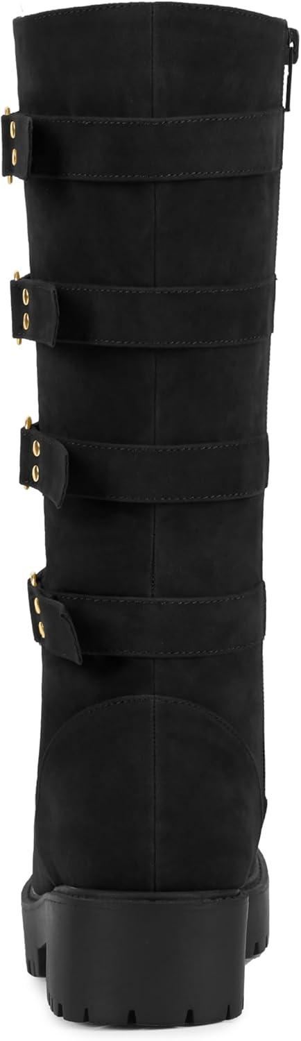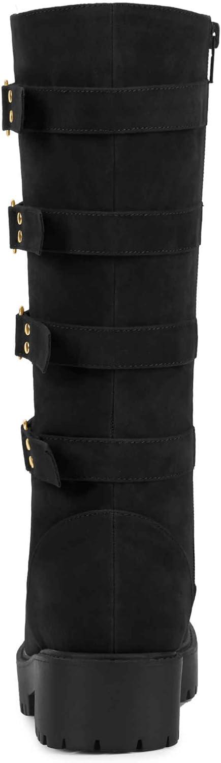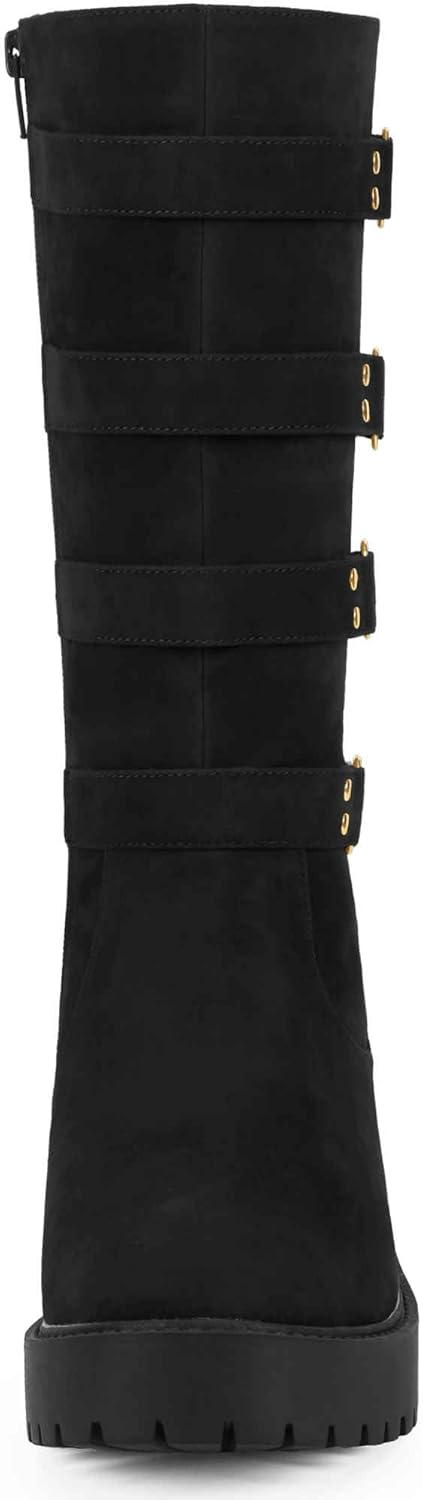 Allegra K Women's Platform Goth Boots Buckles Round Toe Chunky Heel Knee High Boots(Black)