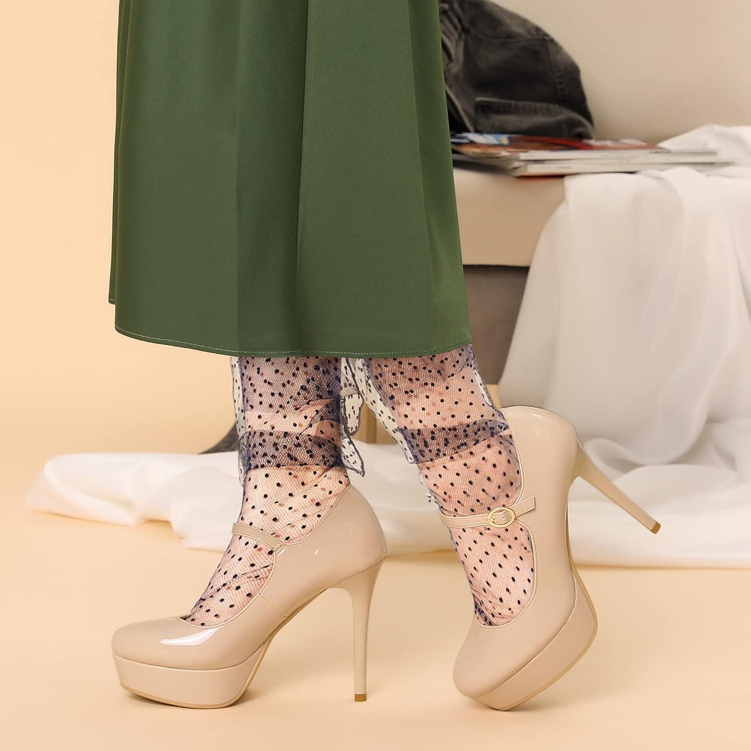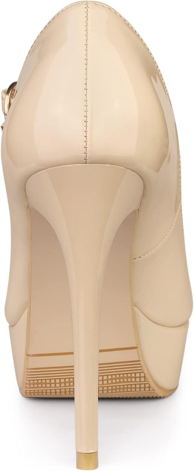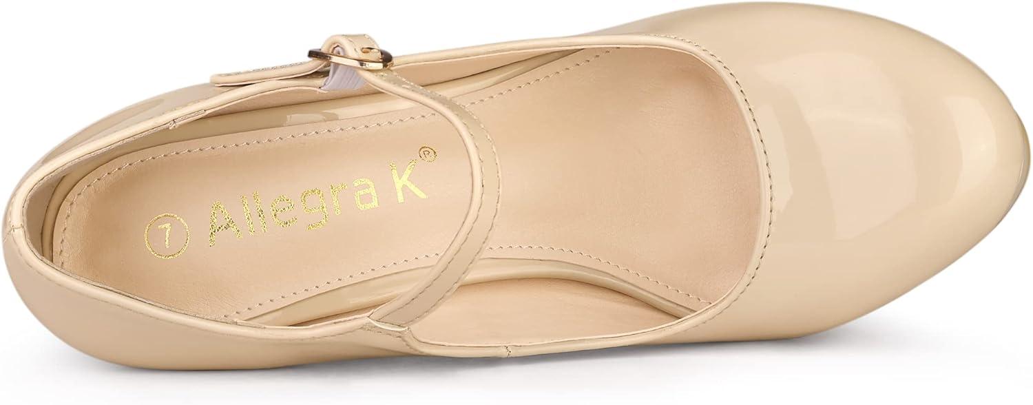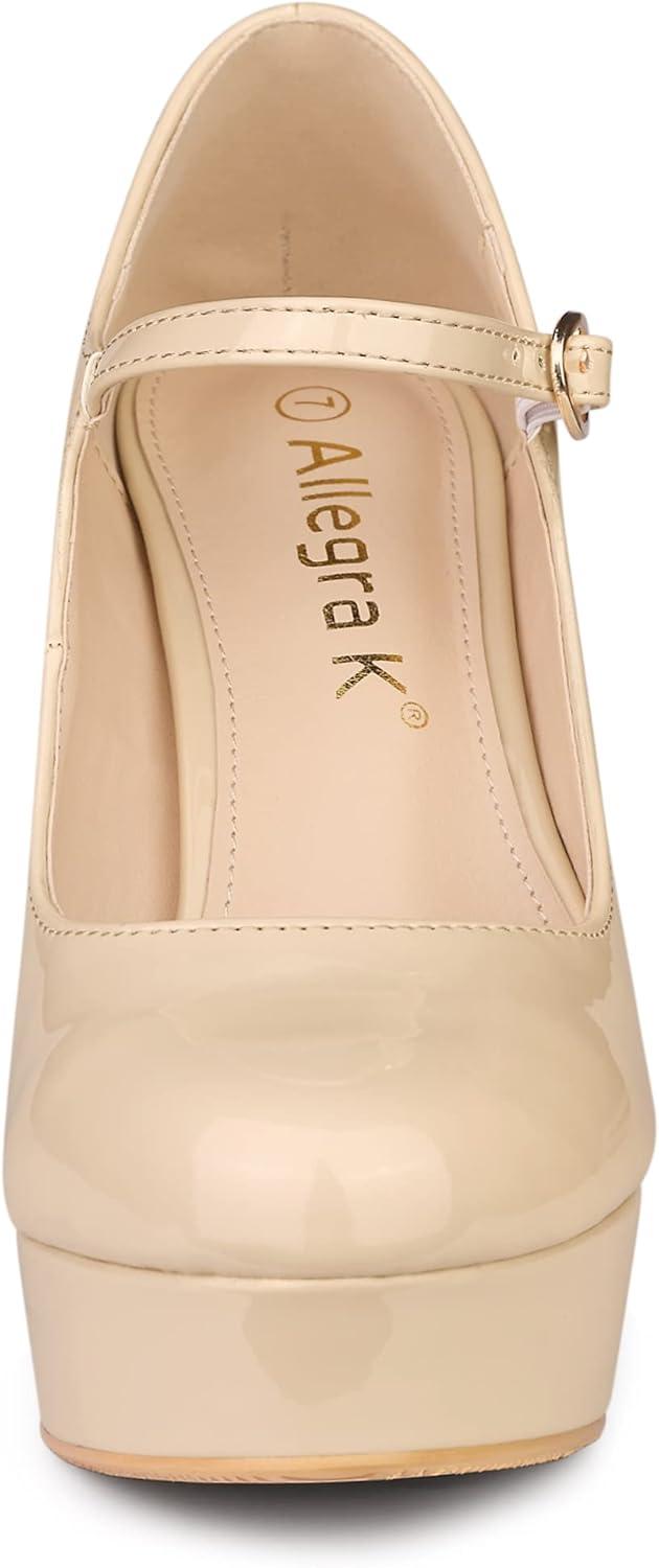 Allegra K Women’s Platform Mary Jane Pumps Ankle Strap Stiletto High Heels Dress Shoes(Nude)