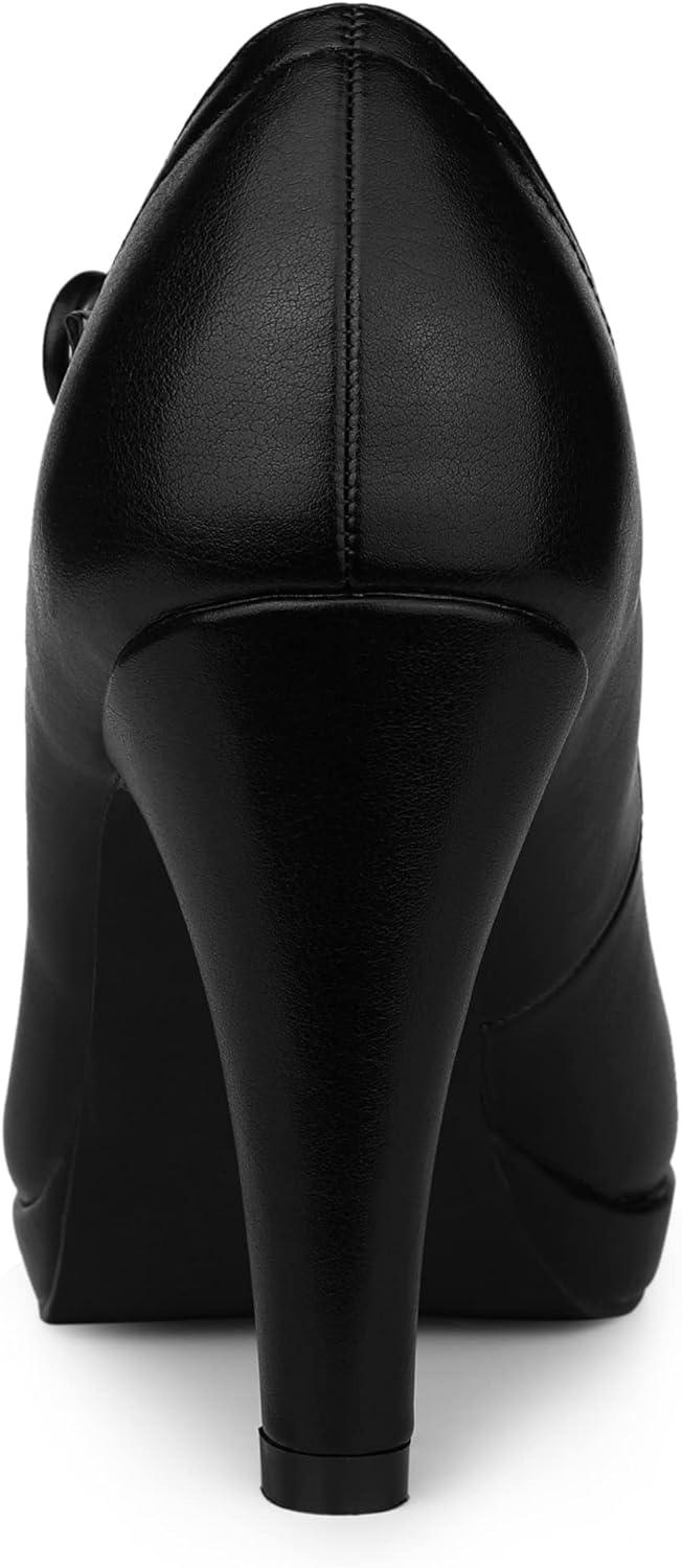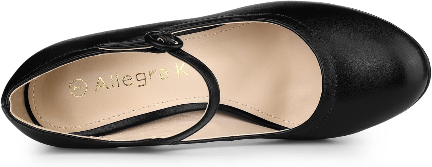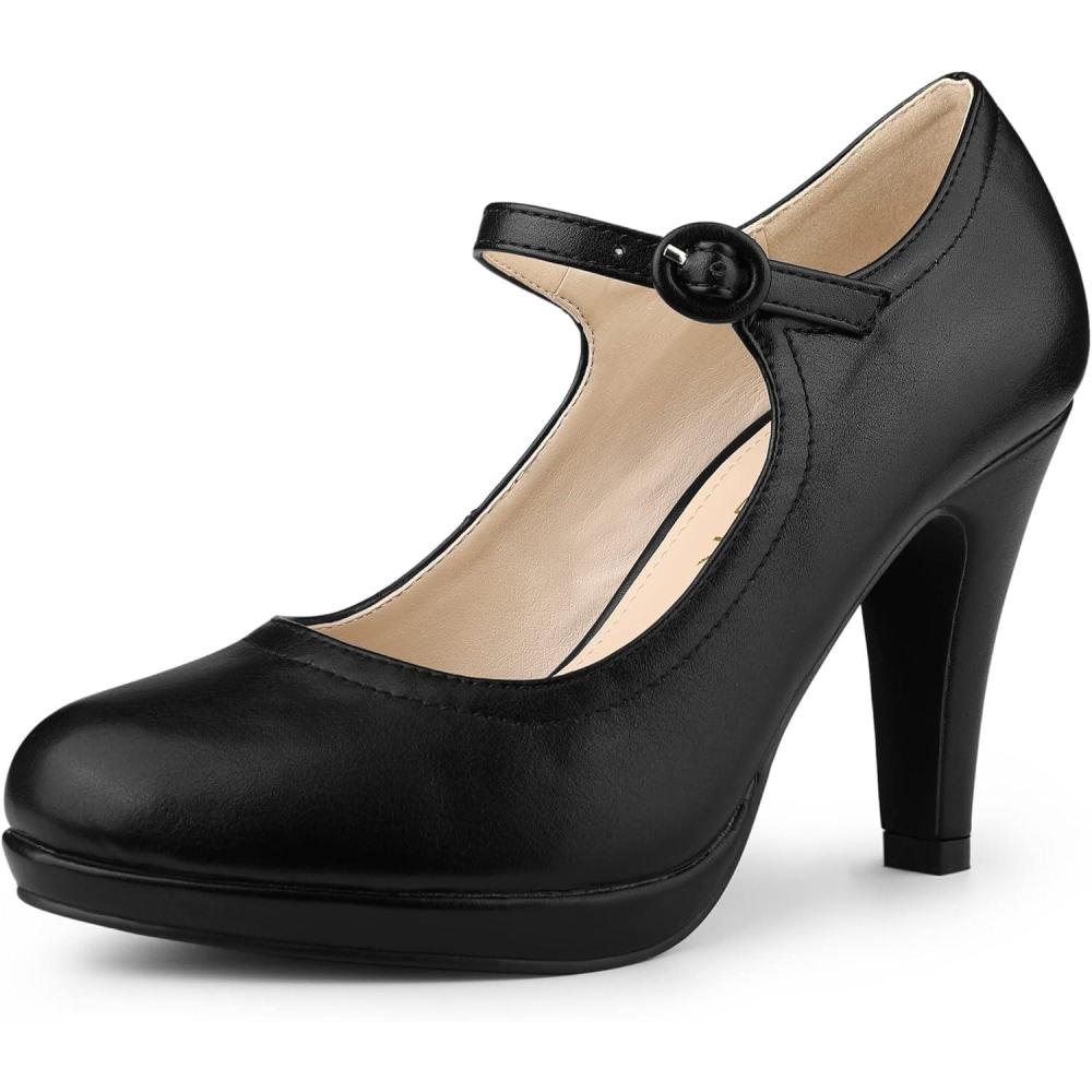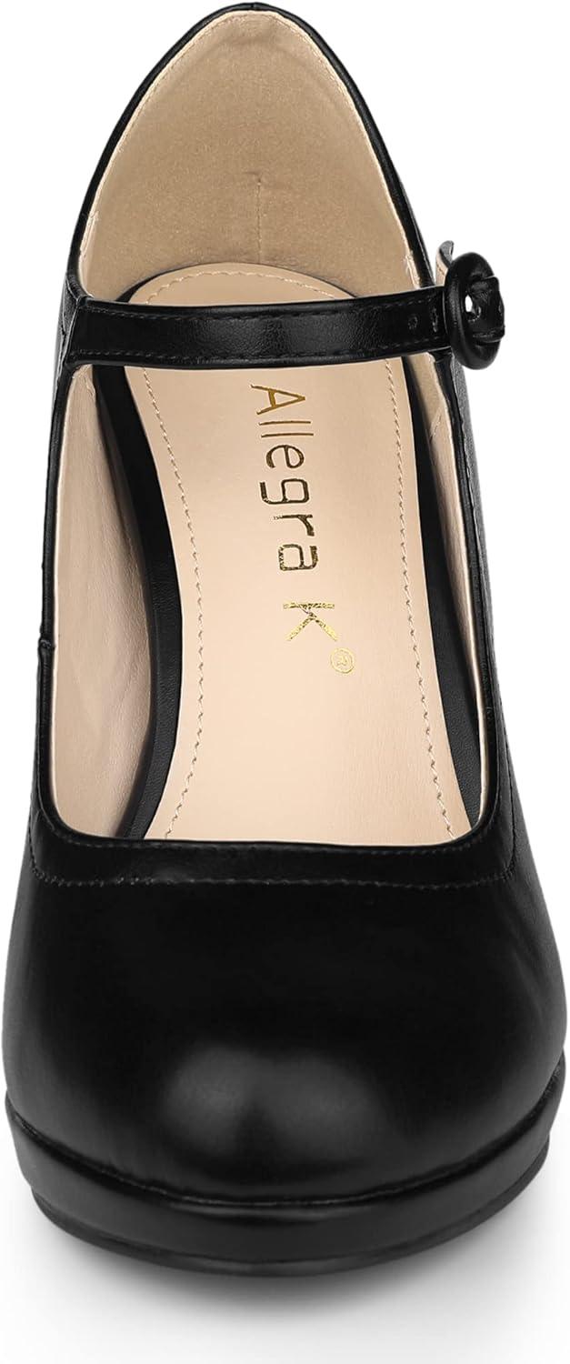 Allegra K Women’s Platform Round Toe Ankle Strap Mary Jane Shoes Pump Stiletto Heel Pumps(Black)