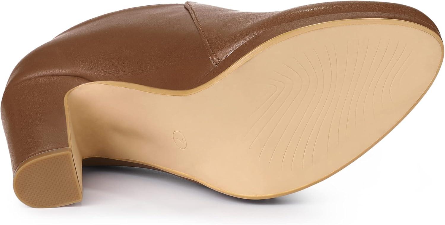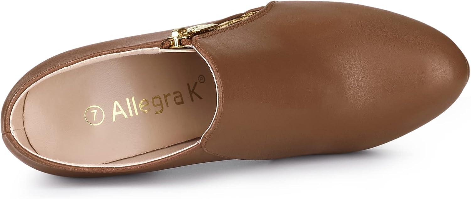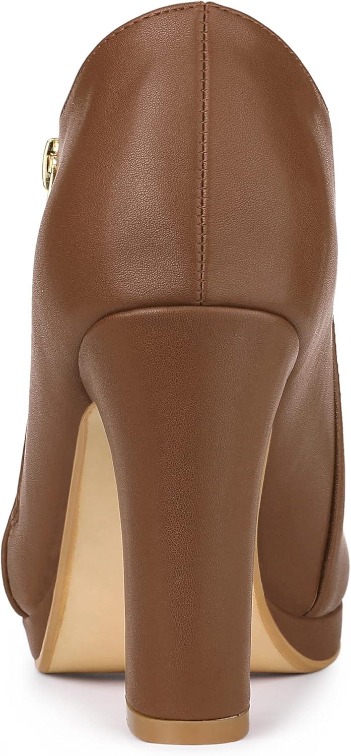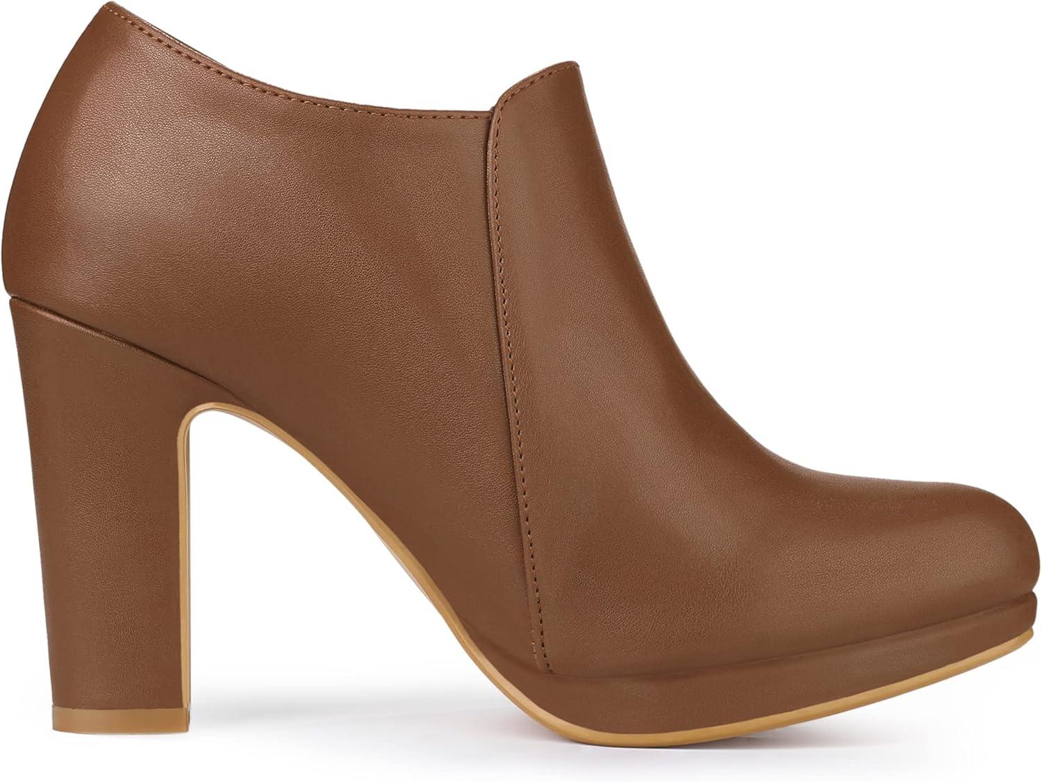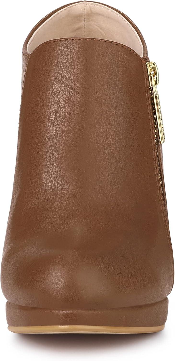 Allegra K Women’s Platform Round Toe Chunky Heelss Ankle Booties(Brown)