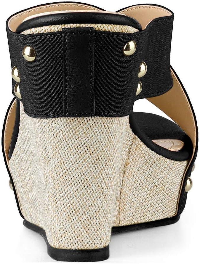 Allegra K Women’s Platform Slide Wedge Sandals(Black)