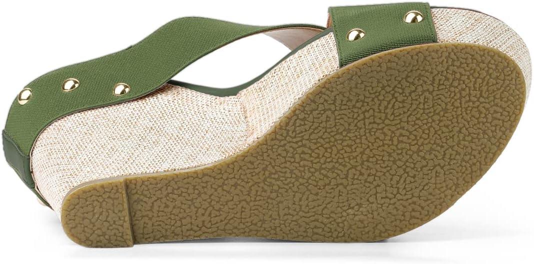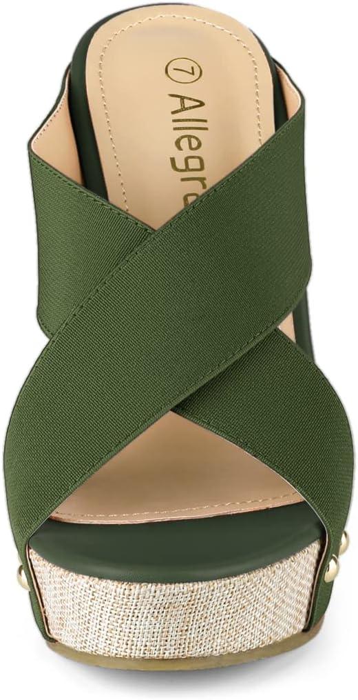 Allegra K Women’s Platform Slide Wedge Sandals(Dark Green)