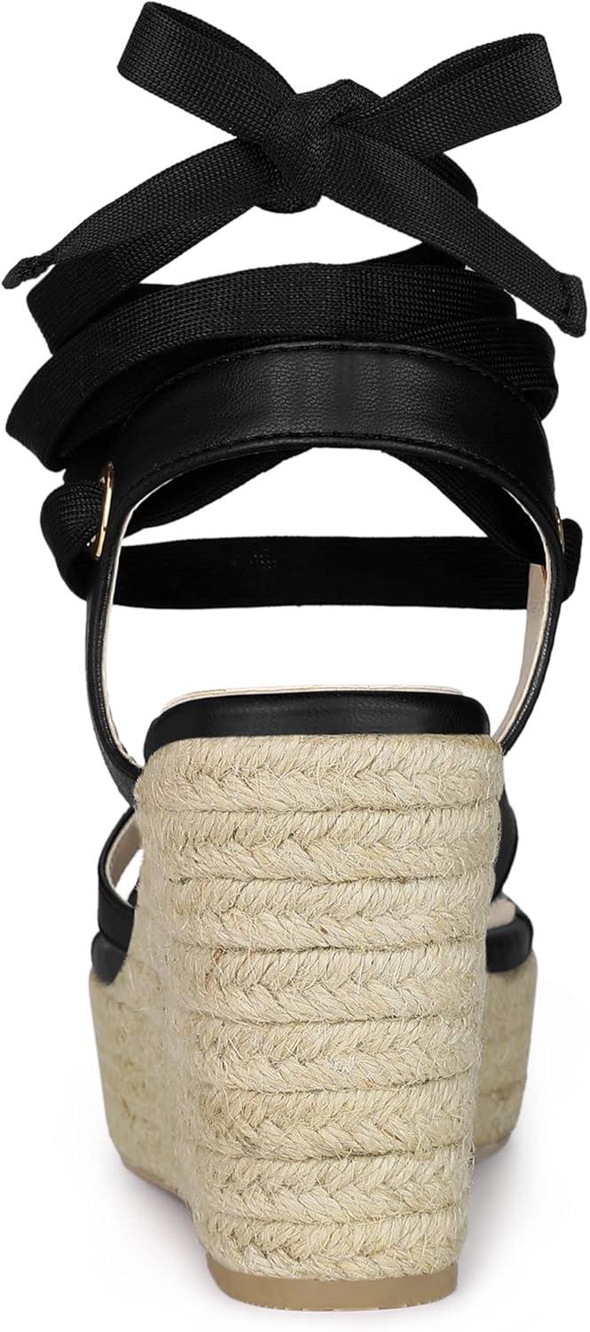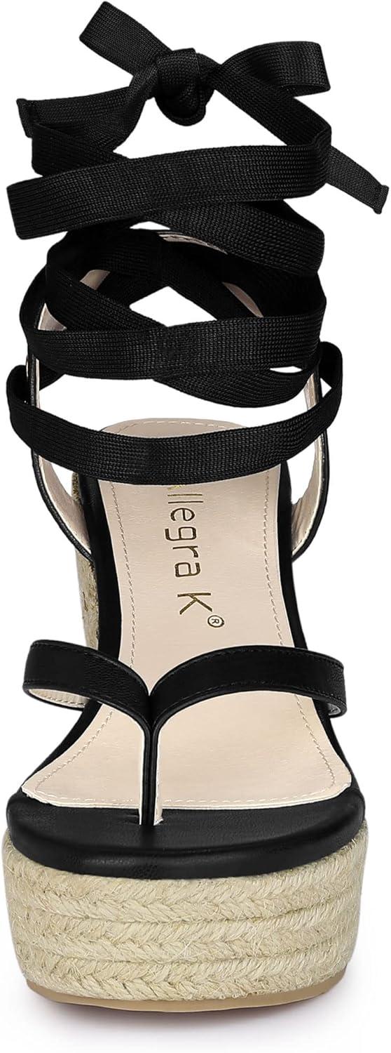 Allegra K Women’s Platform Strappy Slingback Flip Flops Wedge Sandals(Black)