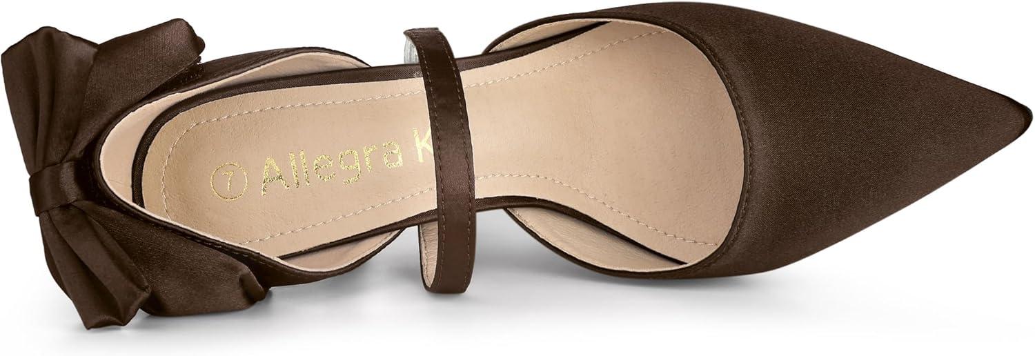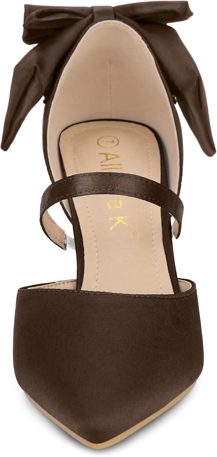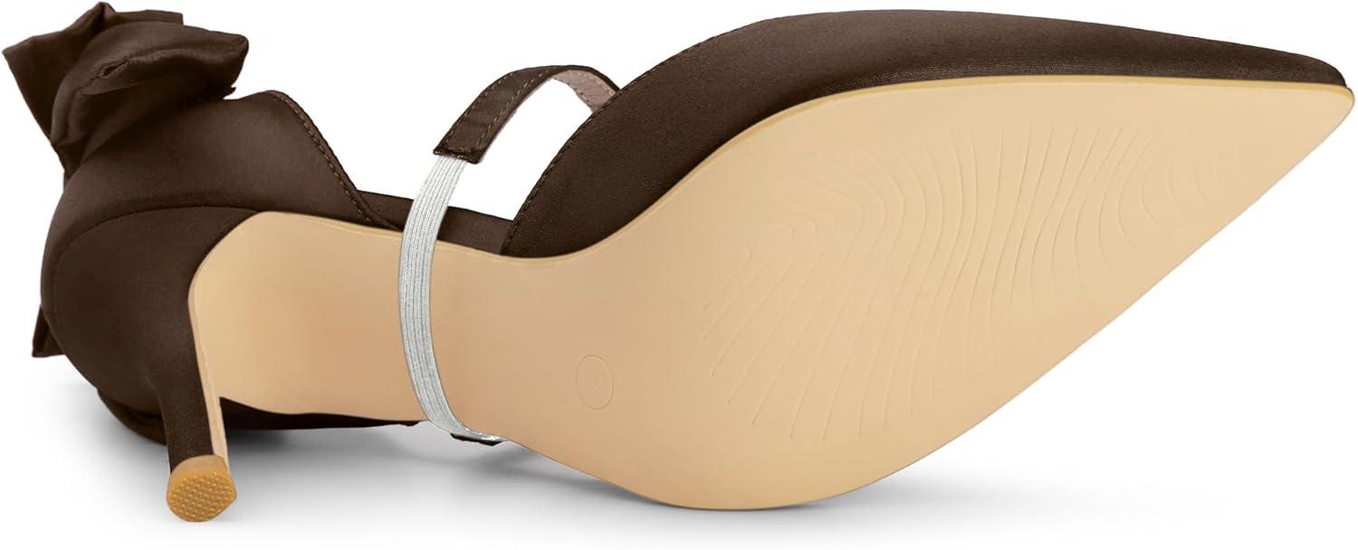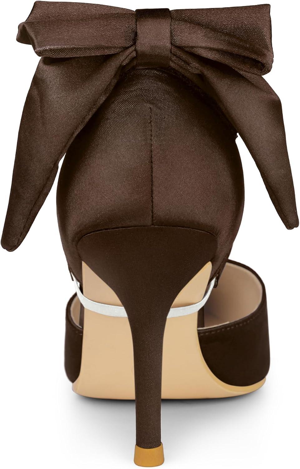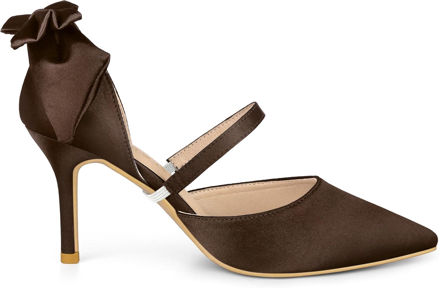 Allegra K Women’s Pointed Toe Bow Satin Stiletto Heels Pumps(Brown)
