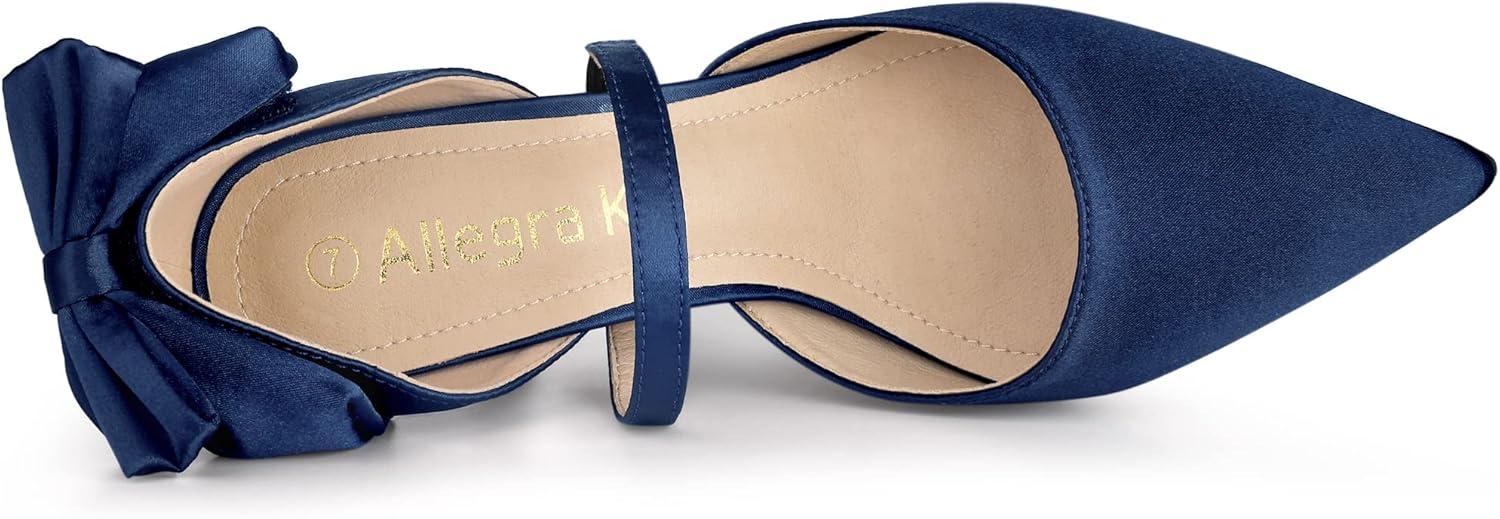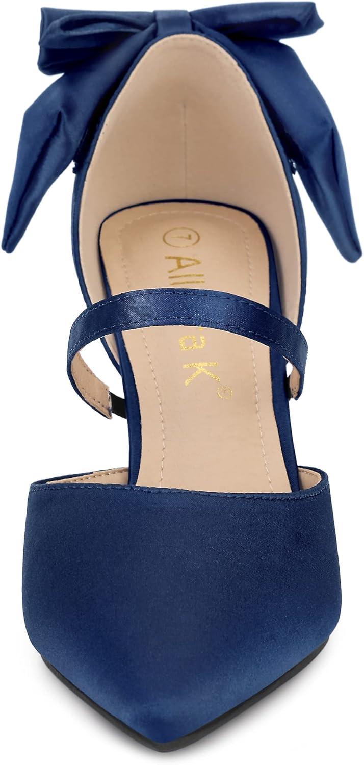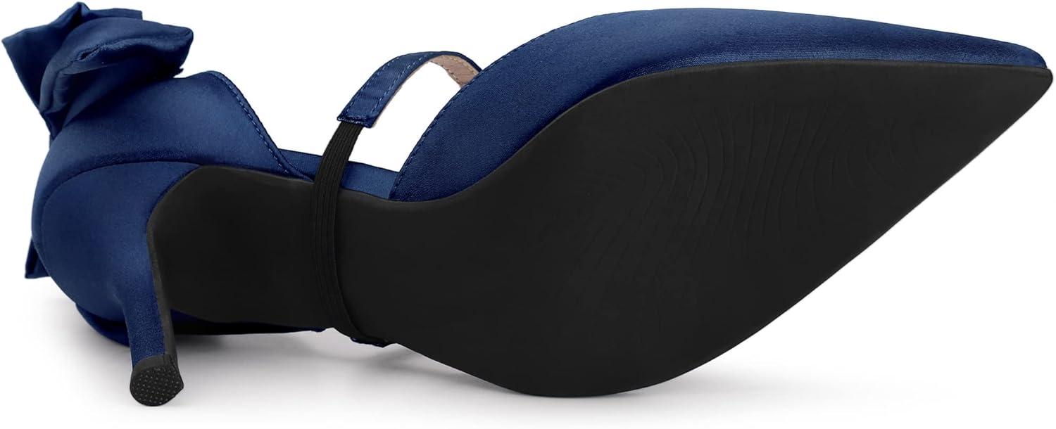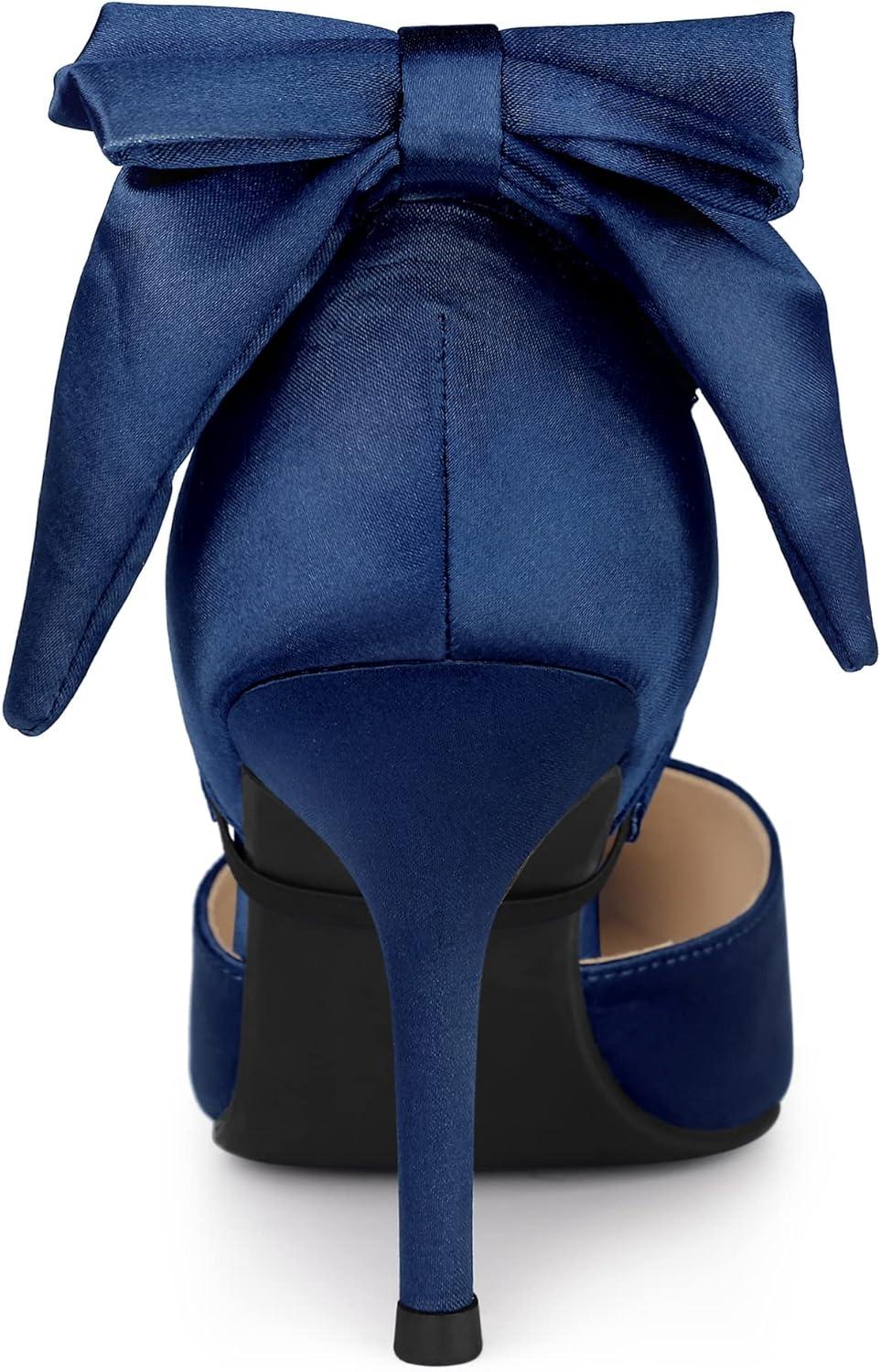 Allegra K Women’s Pointed Toe Bow Satin Stiletto Heels Pumps(Navy Blue)