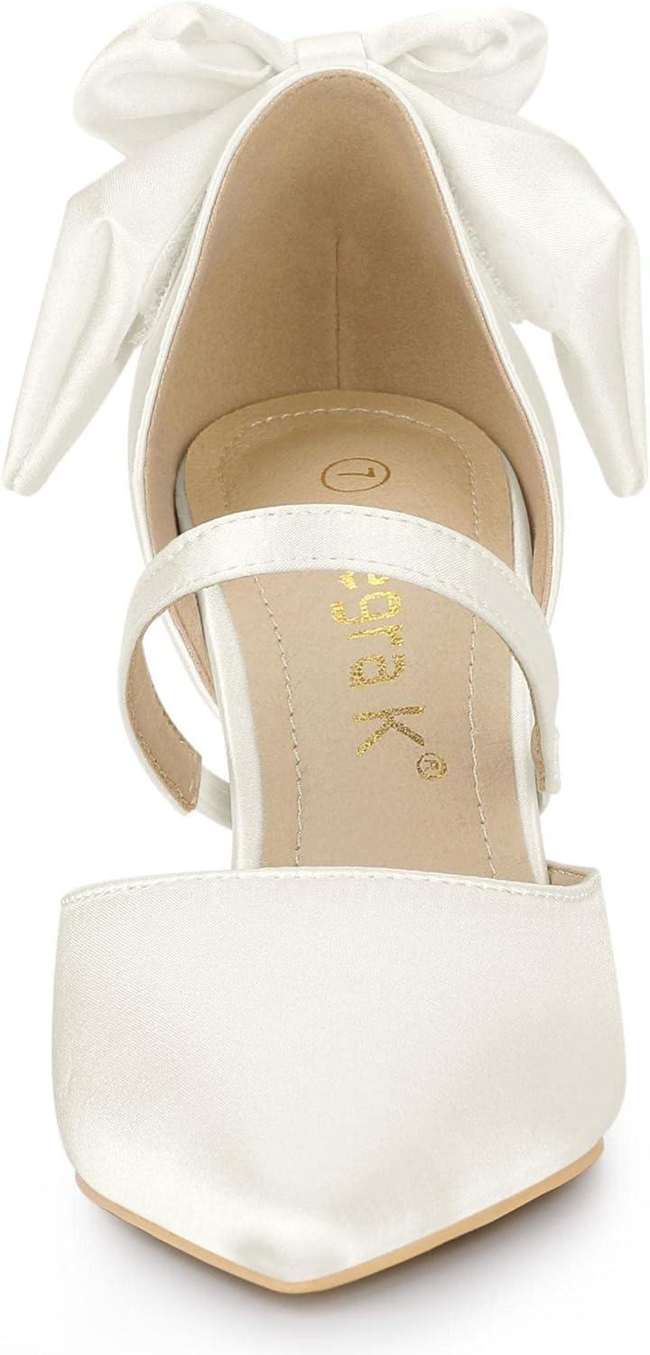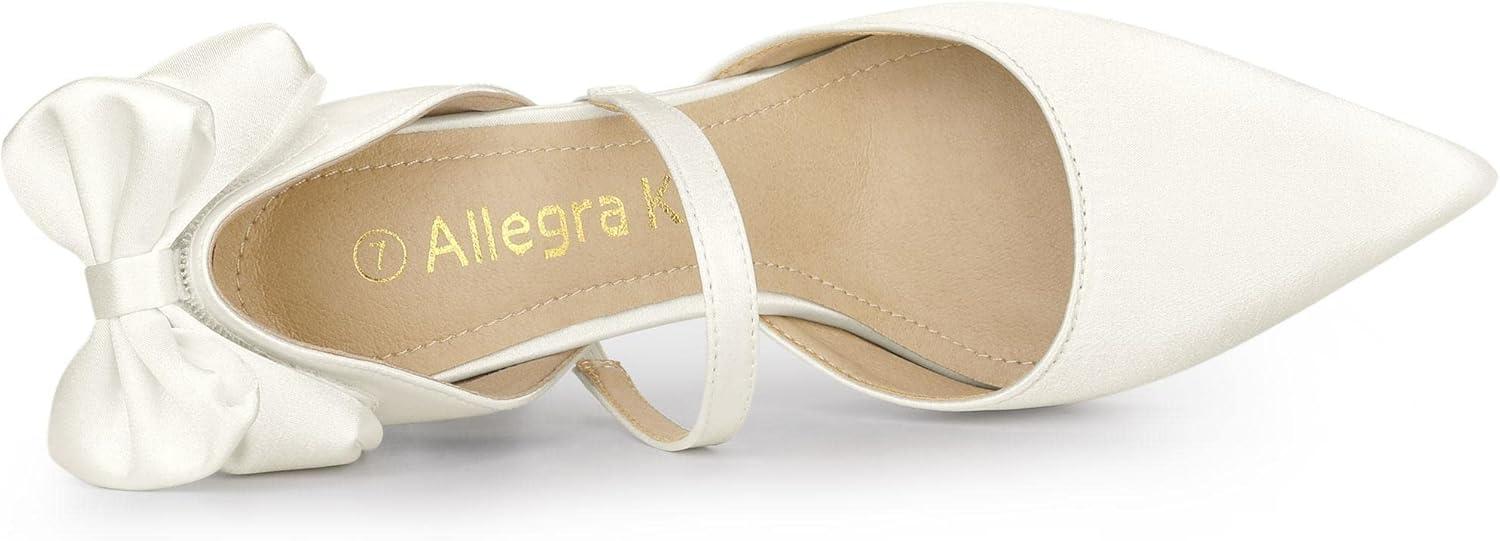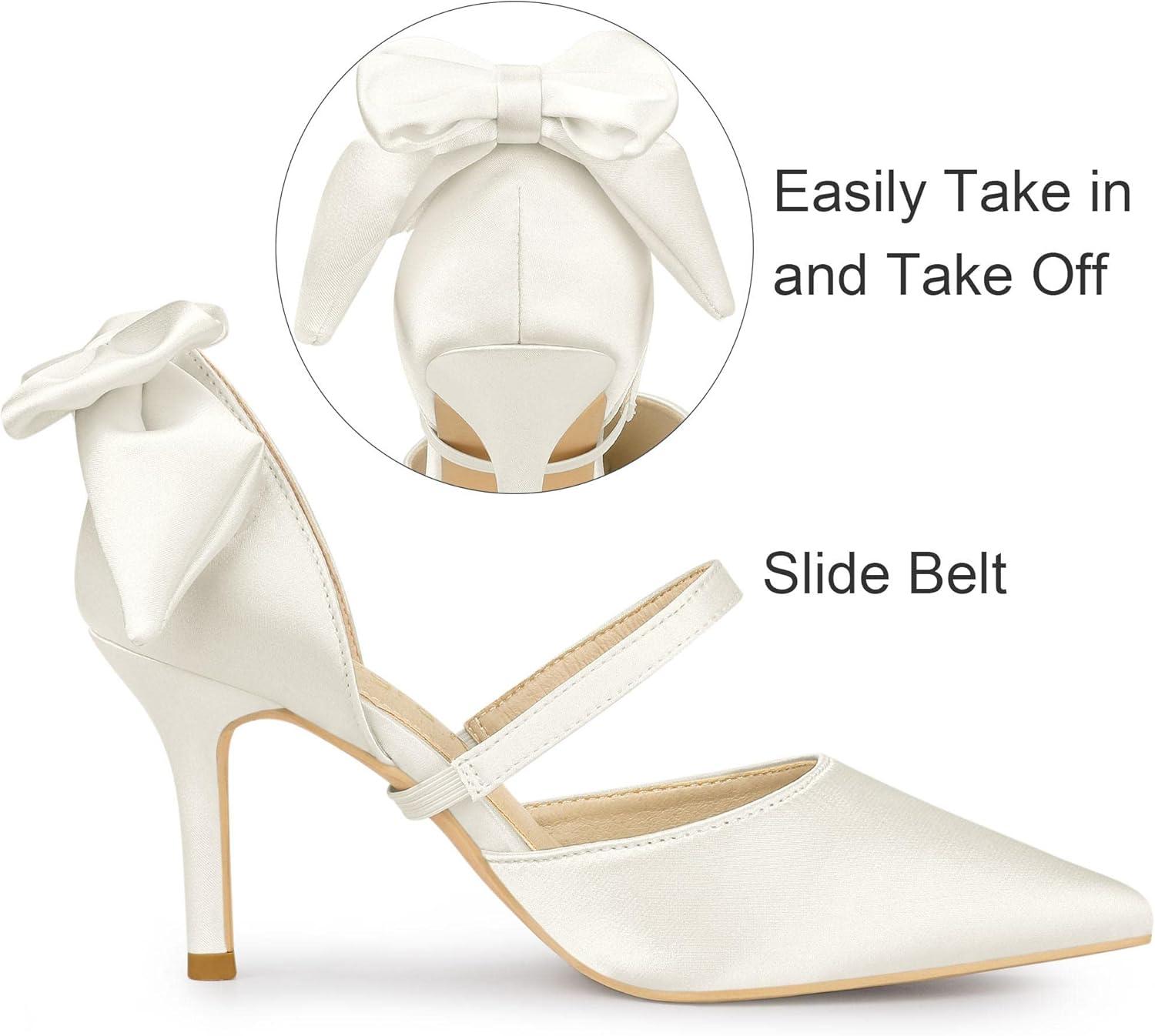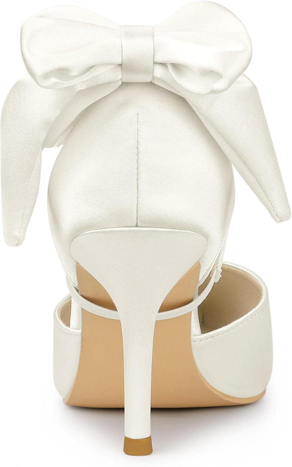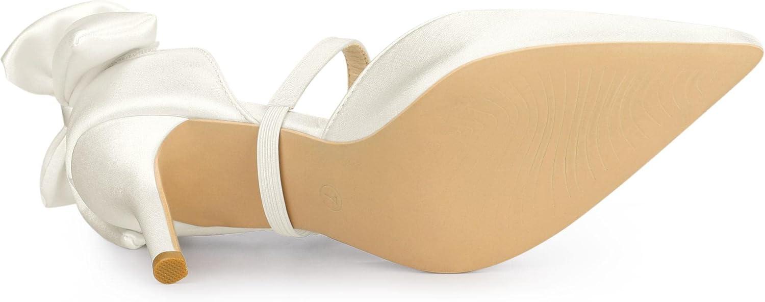 Allegra K Women’s Pointed Toe Bow Satin Stiletto Heels Pumps(White)