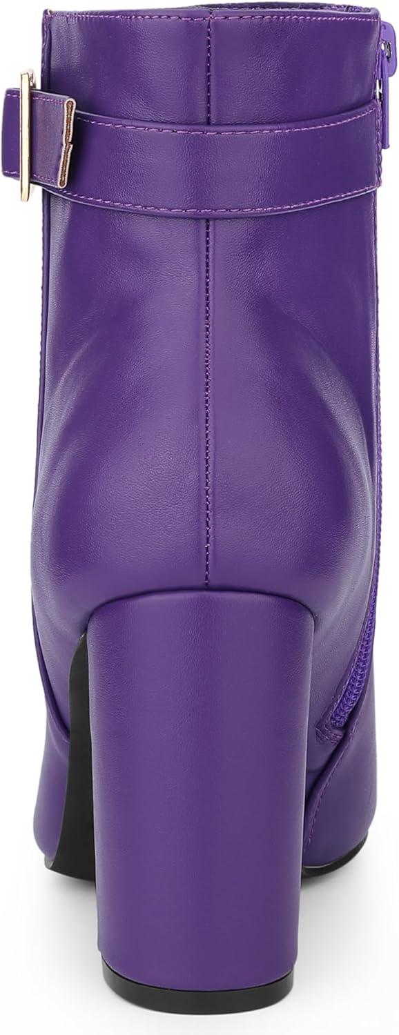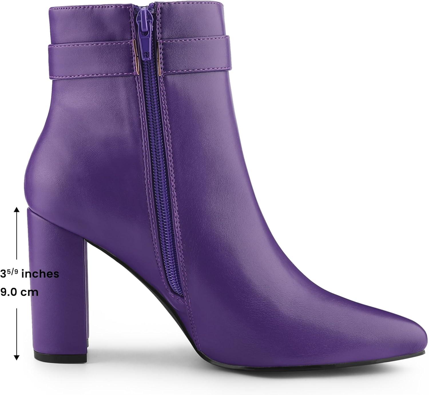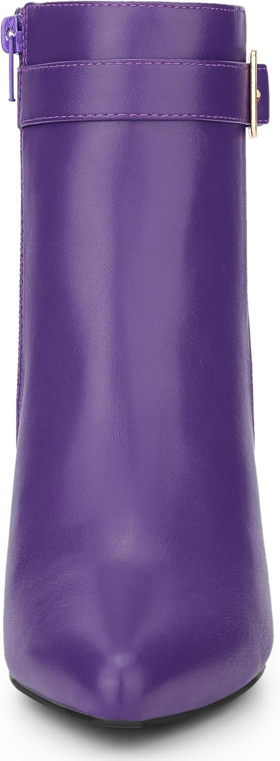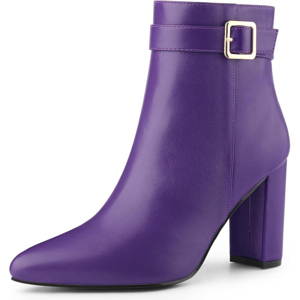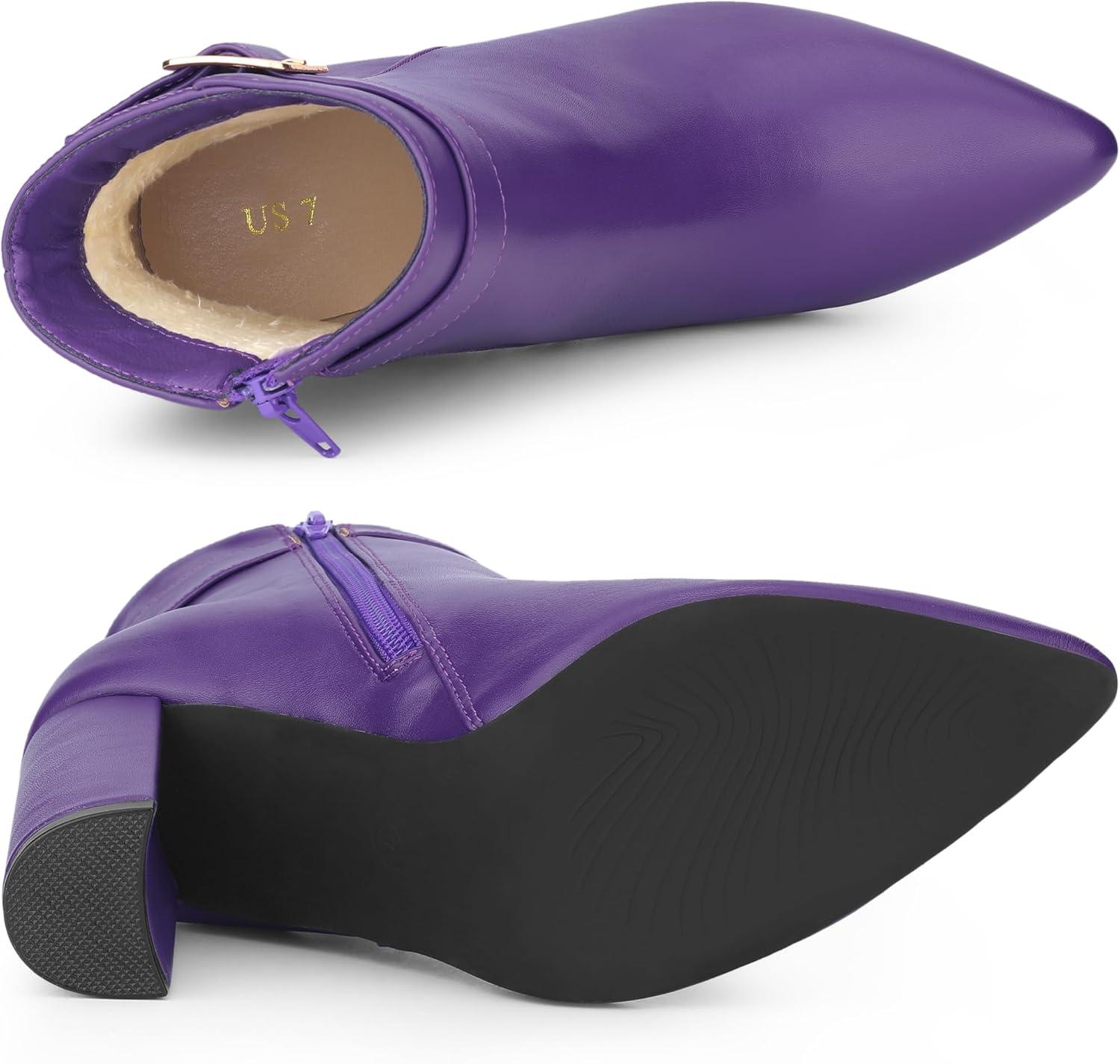 Allegra K Women’s Pointed Toe Buckle Decor Heel Ankle Booties(Purple)