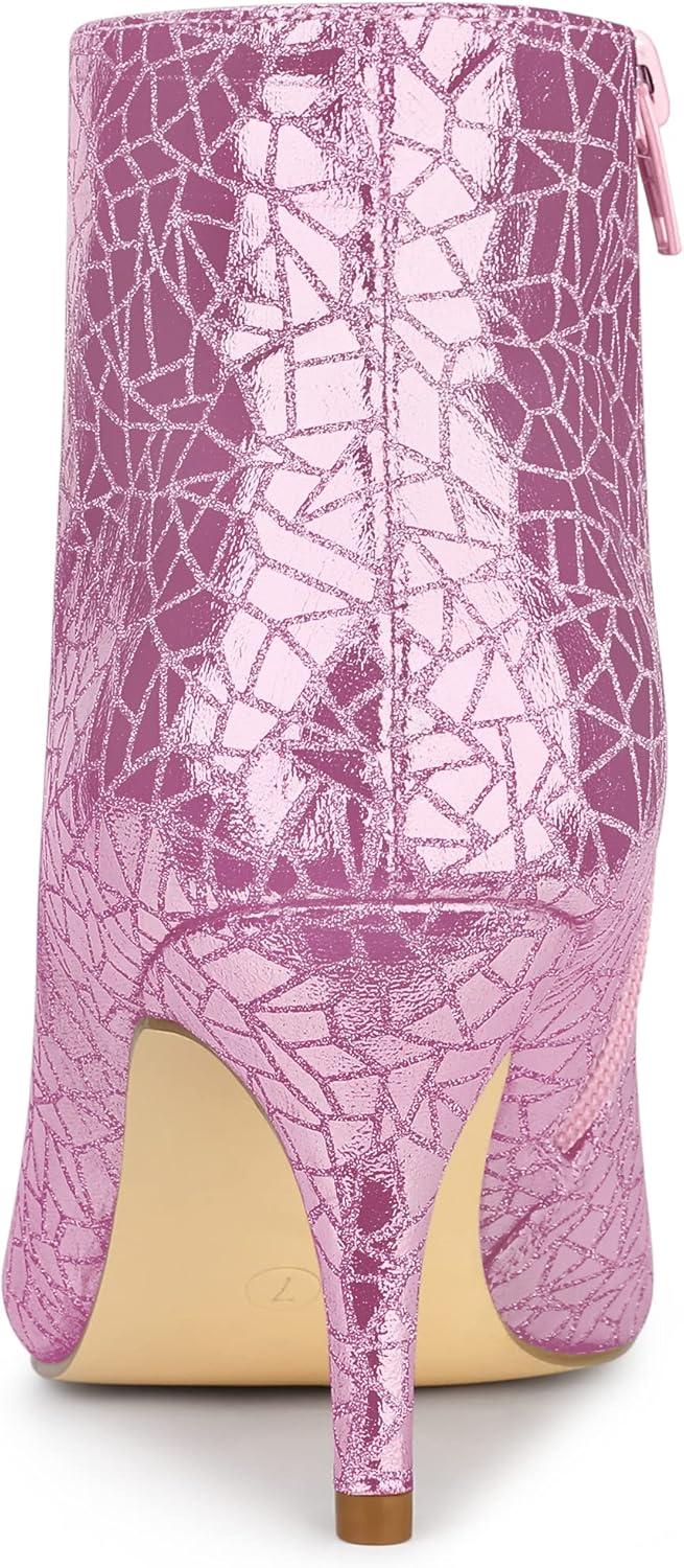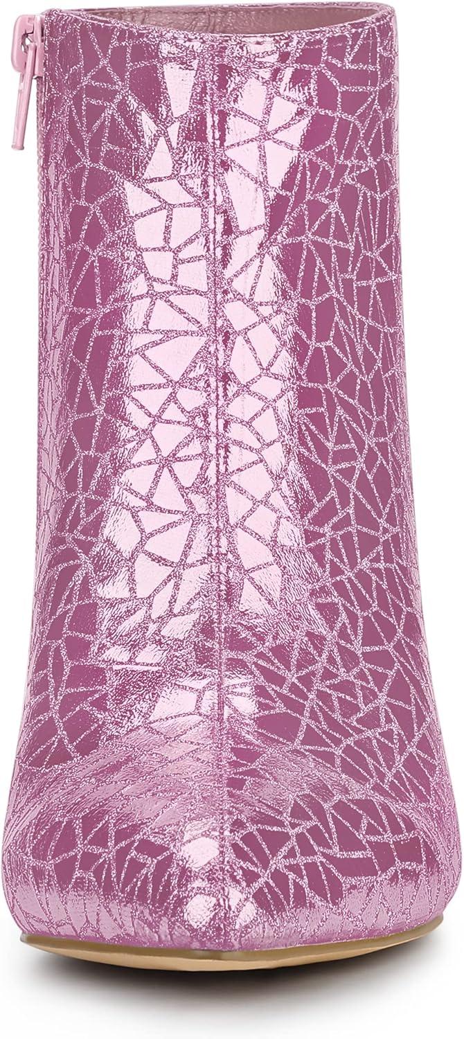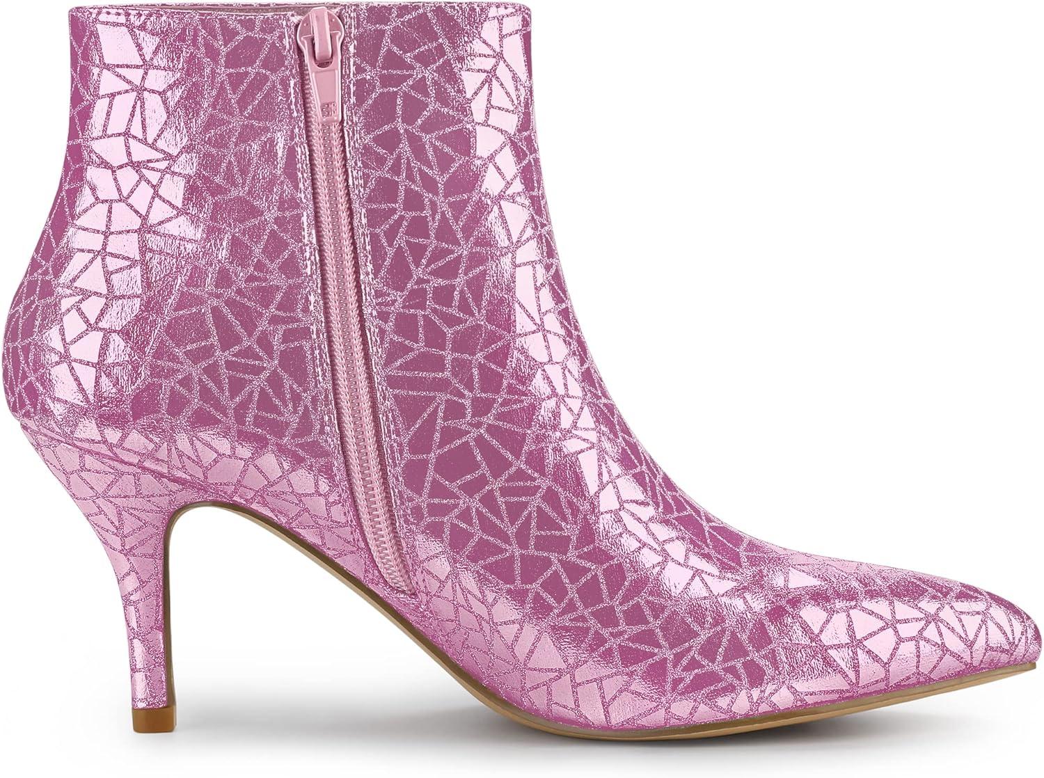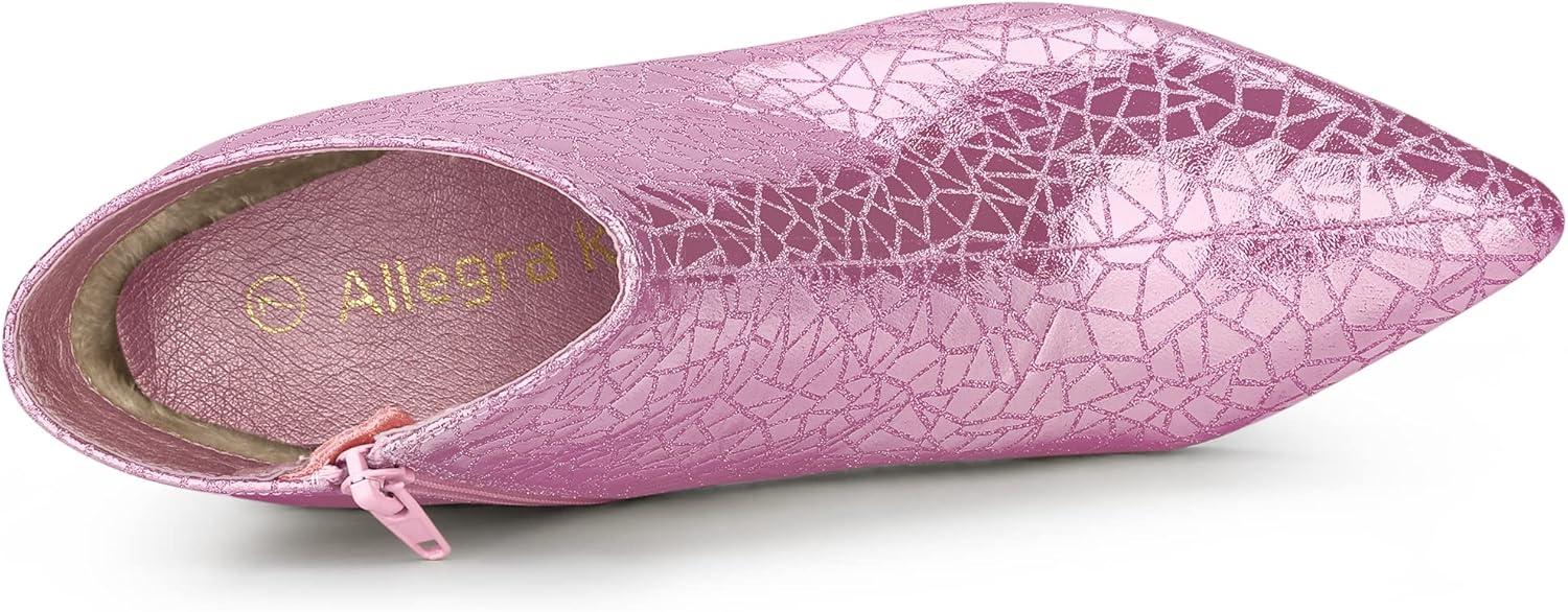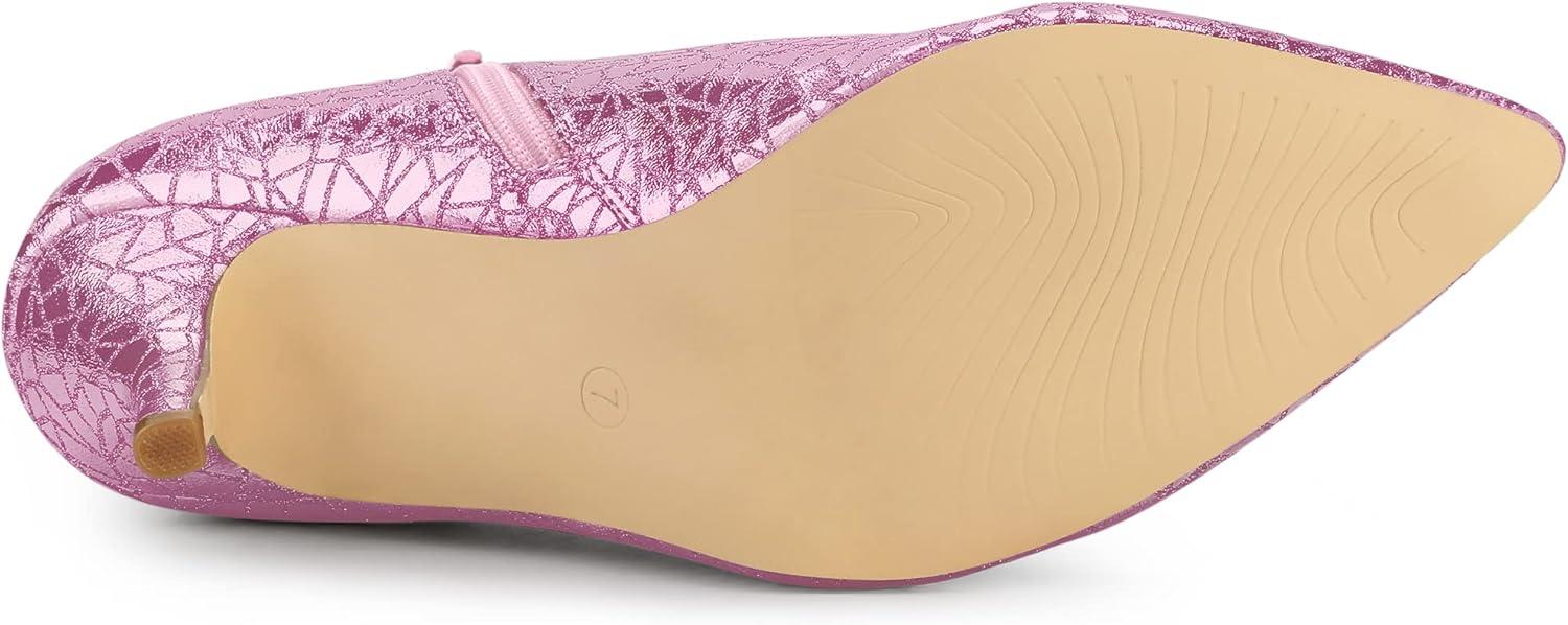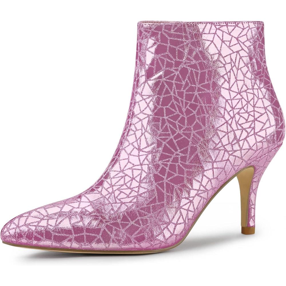 Allegra K Women’s Pointed Toe Buckle Stiletto Heels Ankle Boots(Pink)