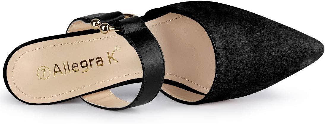 Allegra K Women’s Pointed Toe Chunky Heel Dress Mules Pumps(Black)