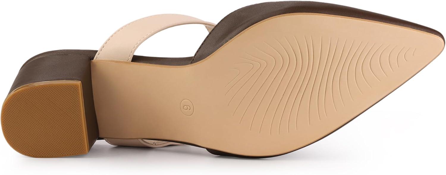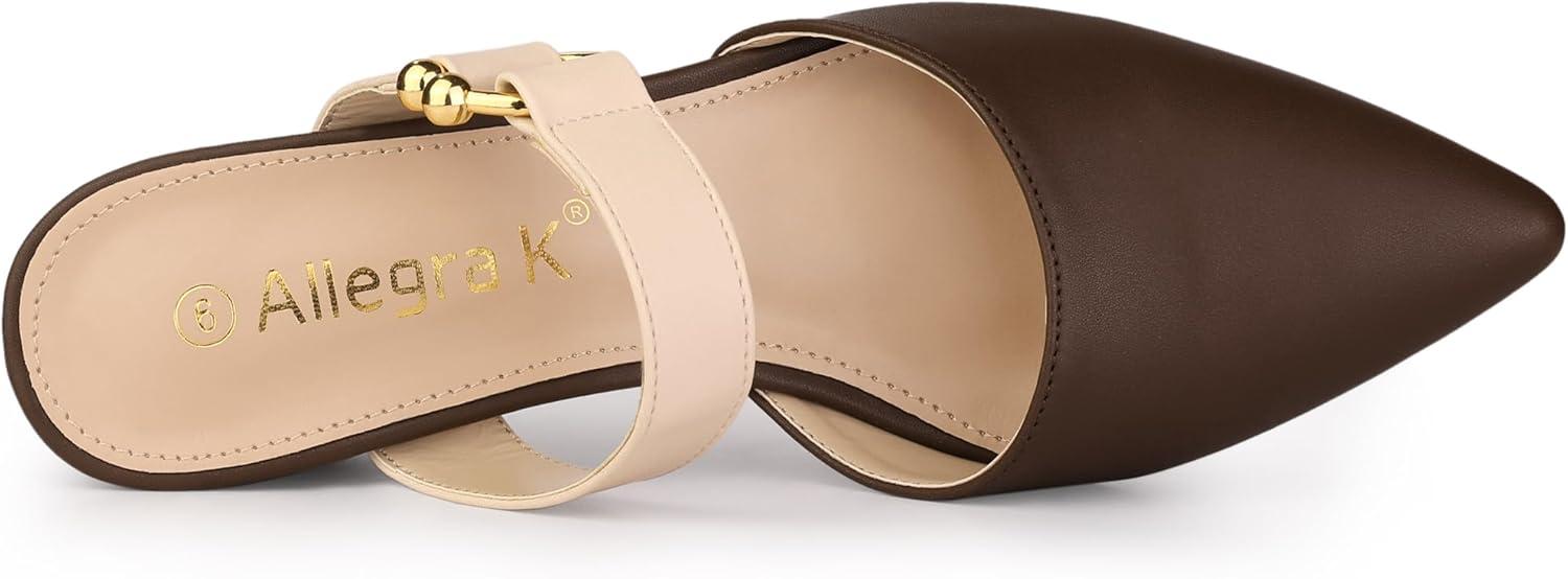 Allegra K Women’s Pointed Toe Chunky Heel Dress Mules Pumps(Brown)