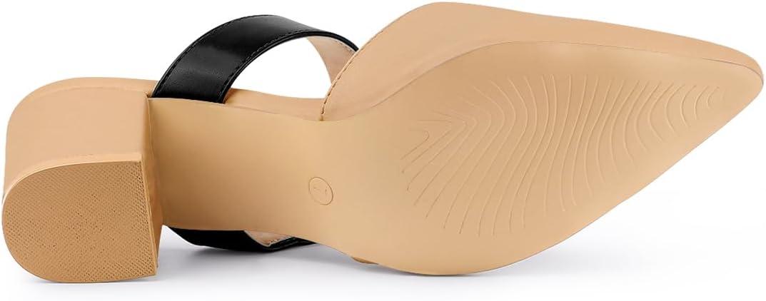 Allegra K Women’s Pointed Toe Chunky Heel Dress Mules Pumps(Brown)