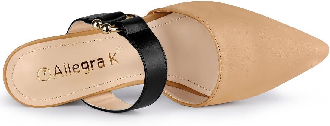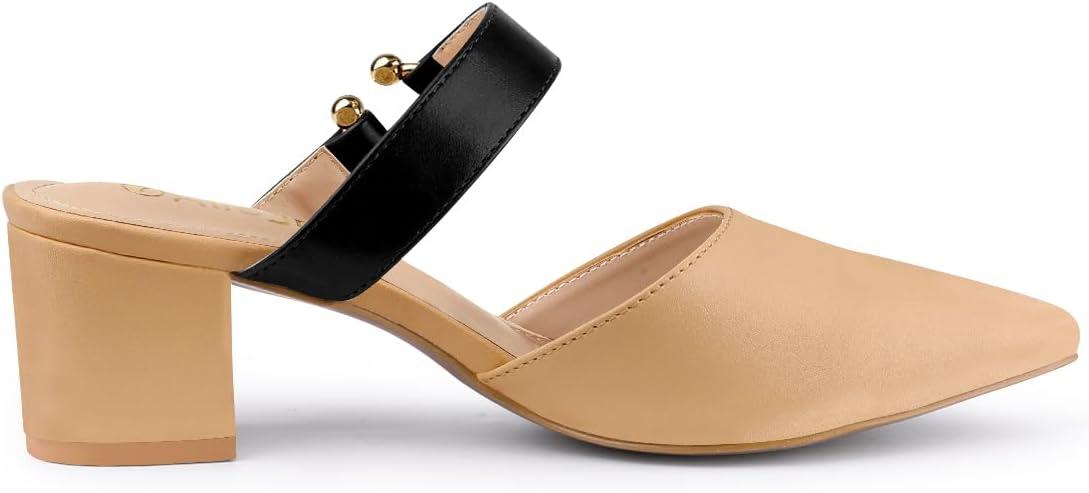 Allegra K Women’s Pointed Toe Chunky Heel Dress Mules Pumps(Khaki)