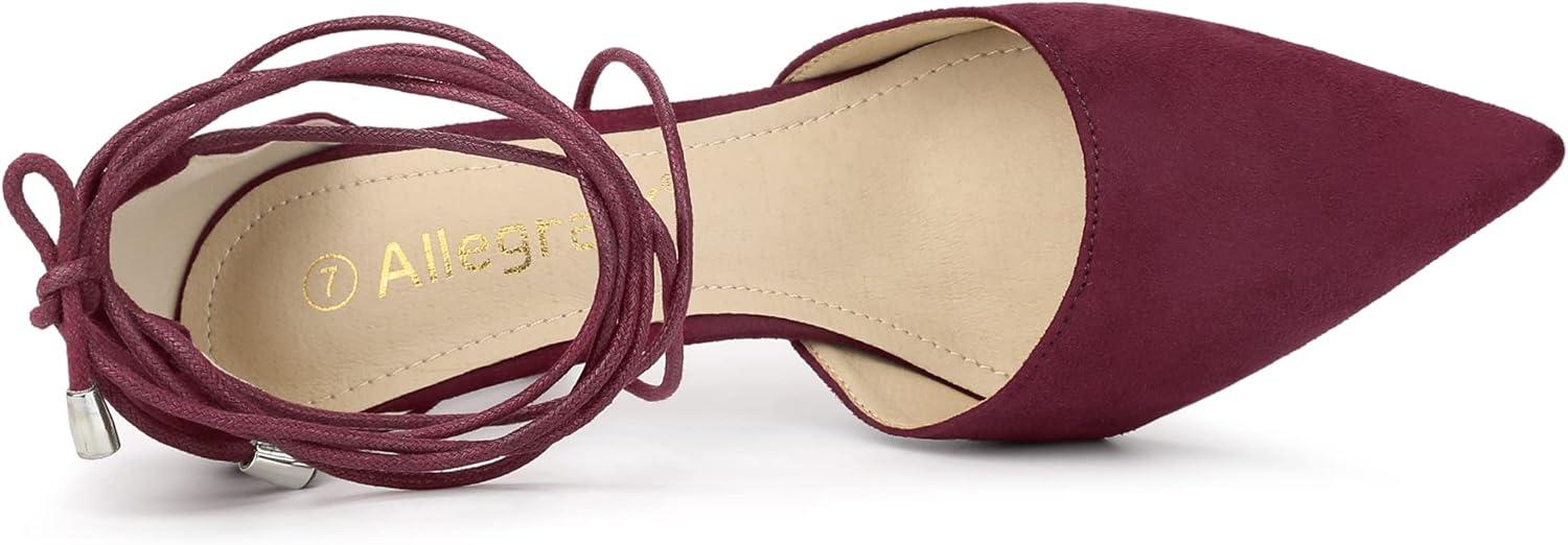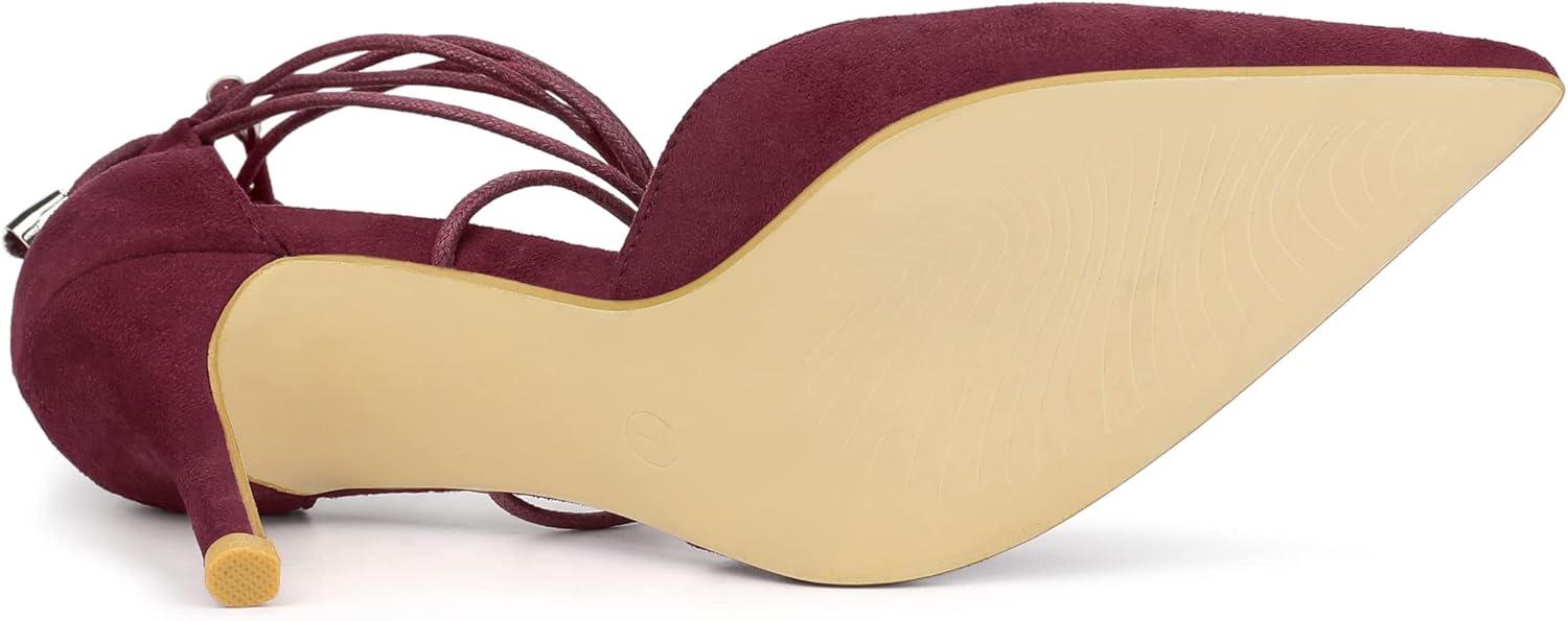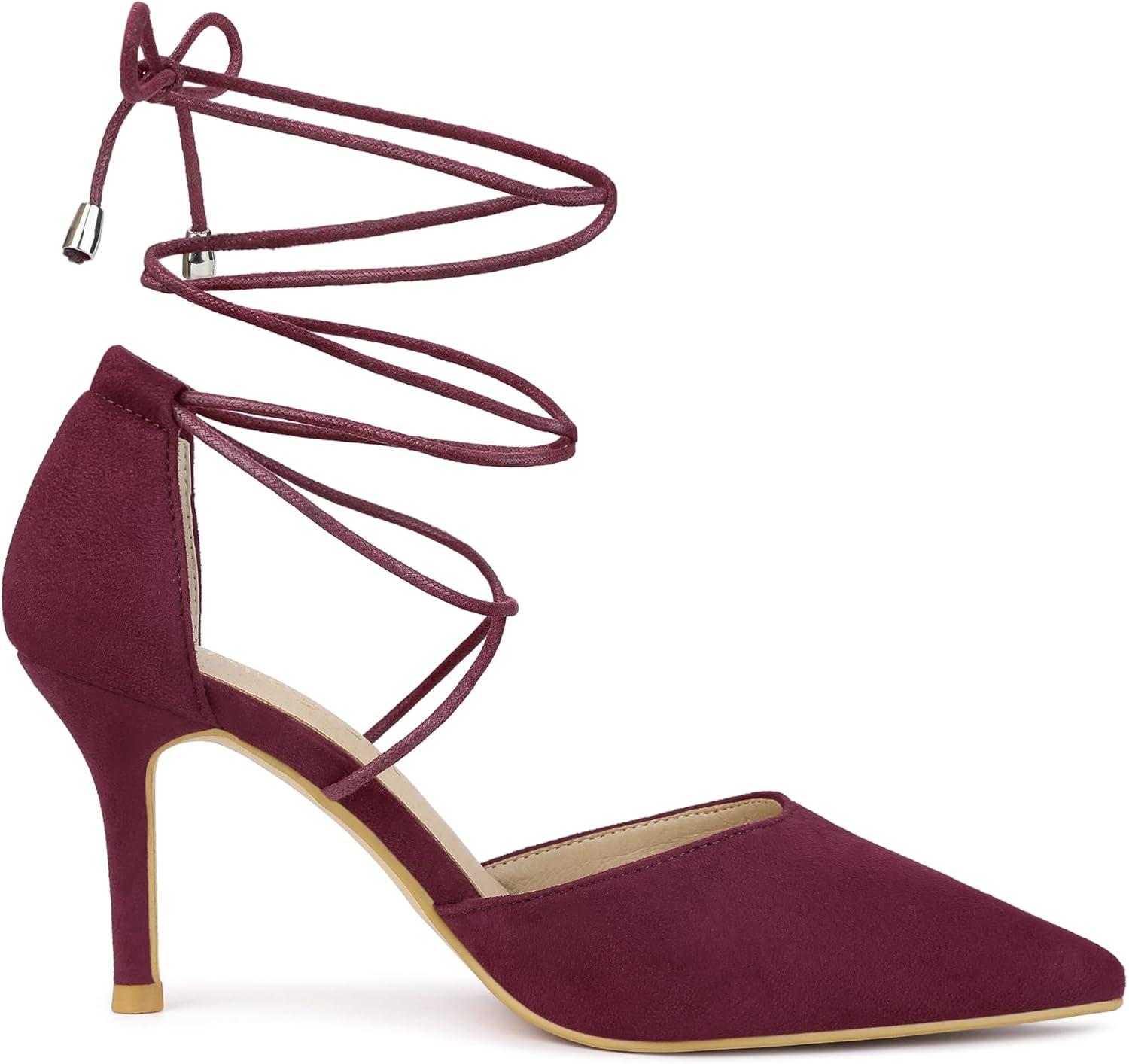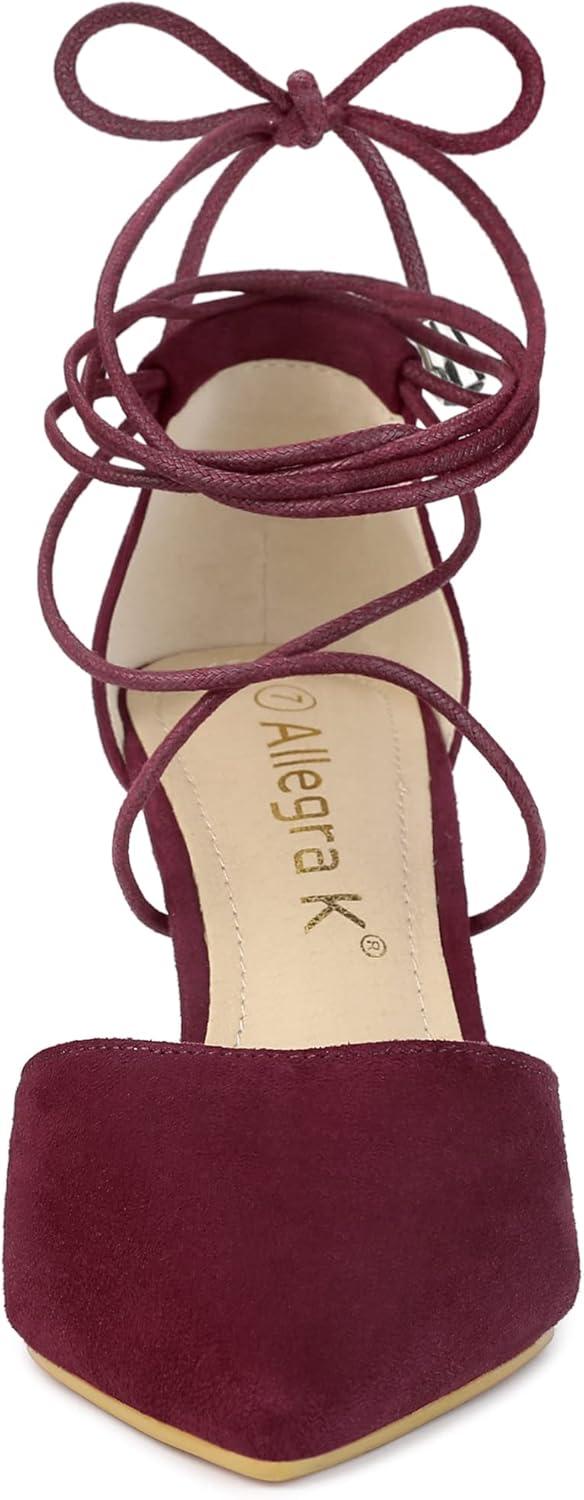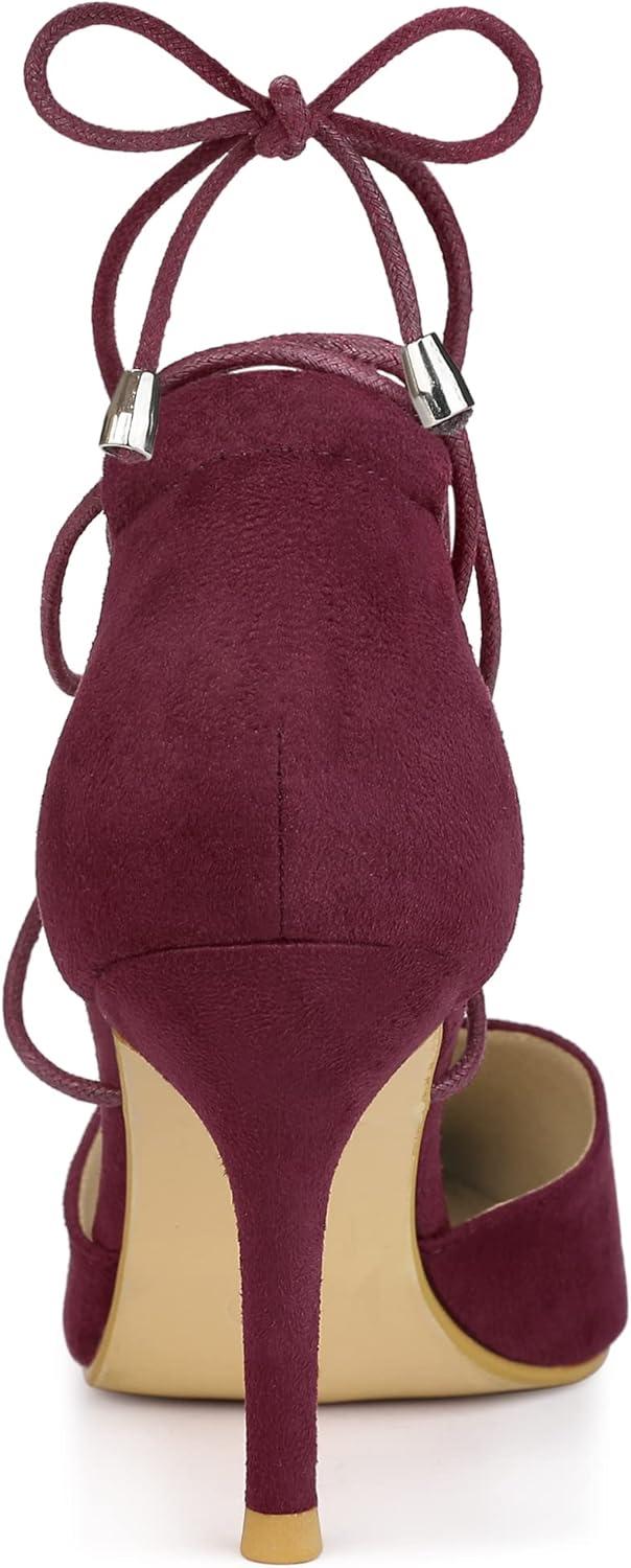 Allegra K Women’s Pointed Toe Dress Pumps Lace Up Stiletto Heels Sandals(Burgundy)