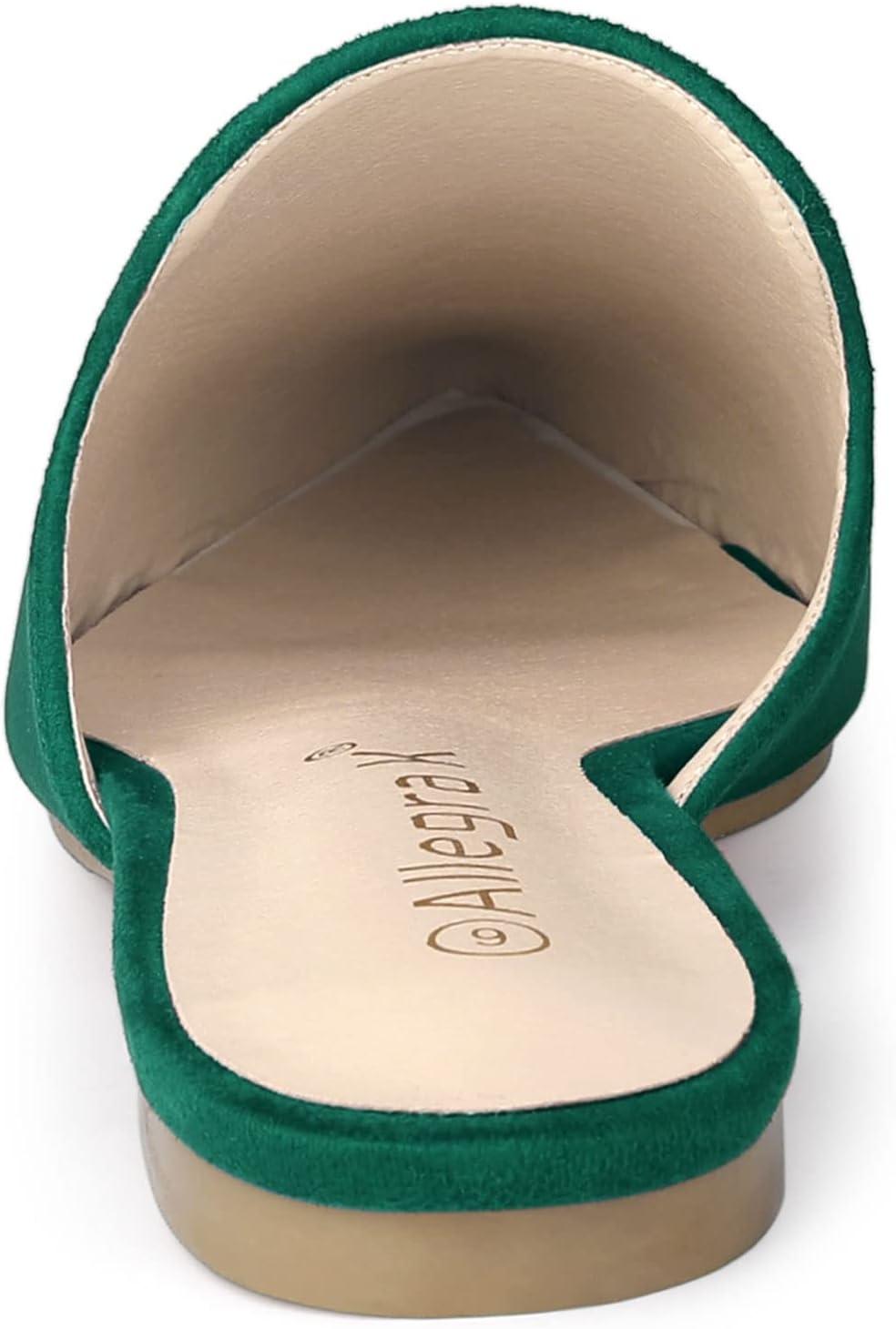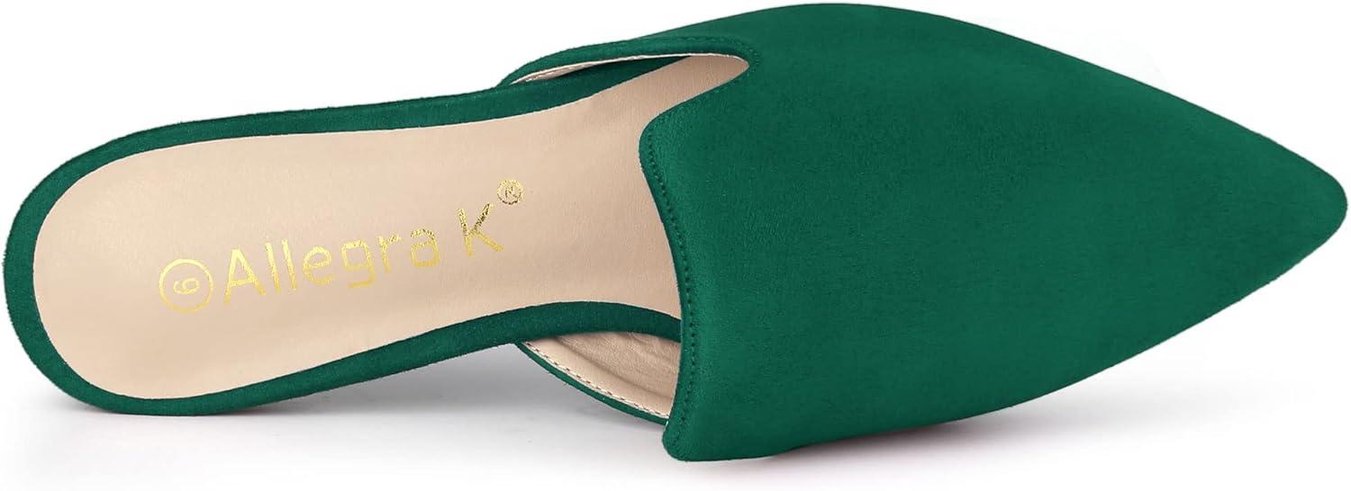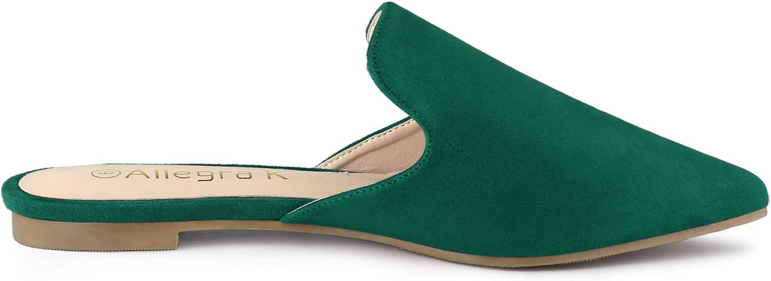 Allegra K Women’s Pointed Toe Flat Slides Mules(Emerald Green)