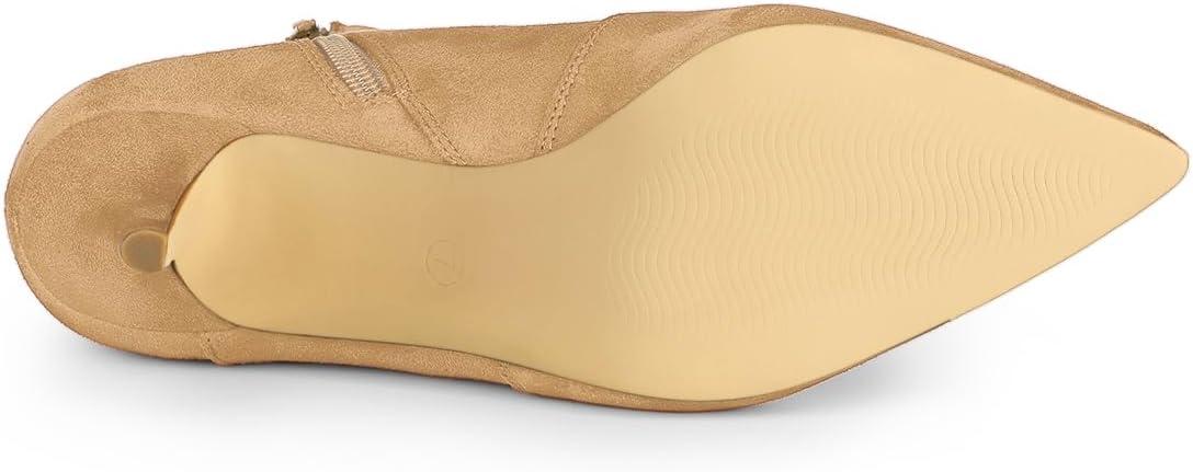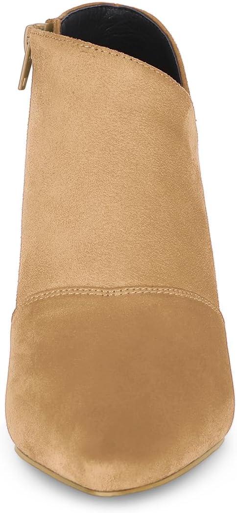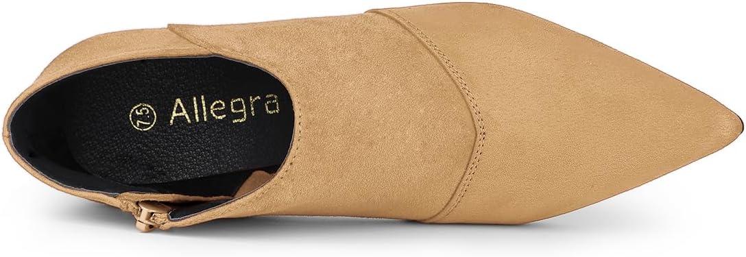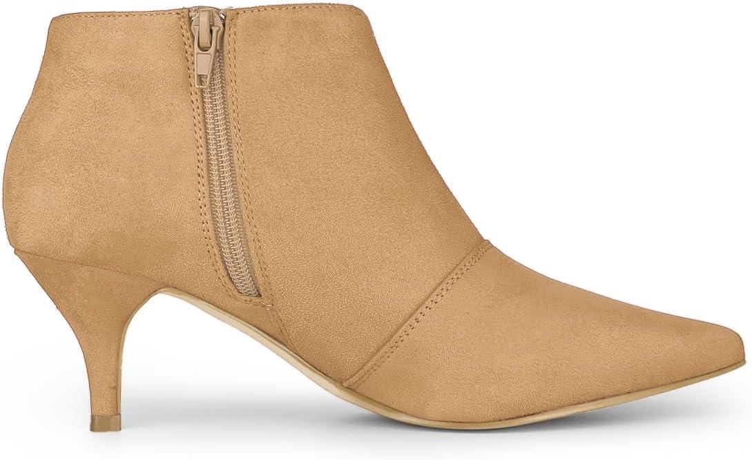 Allegra K Women’s Pointed Toe Kitten Heel Cutout Ankle Boots(Khaki)