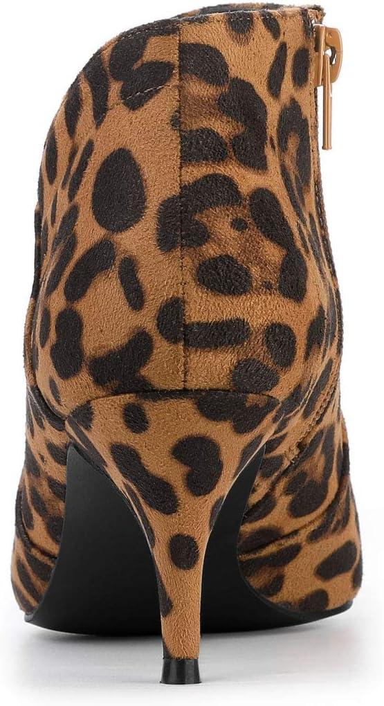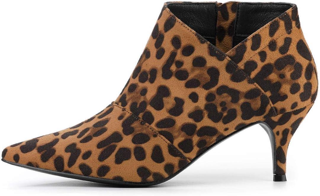 Allegra K Women's Pointed Toe Kitten Heel Cutout Ankle Boots(Leopard)