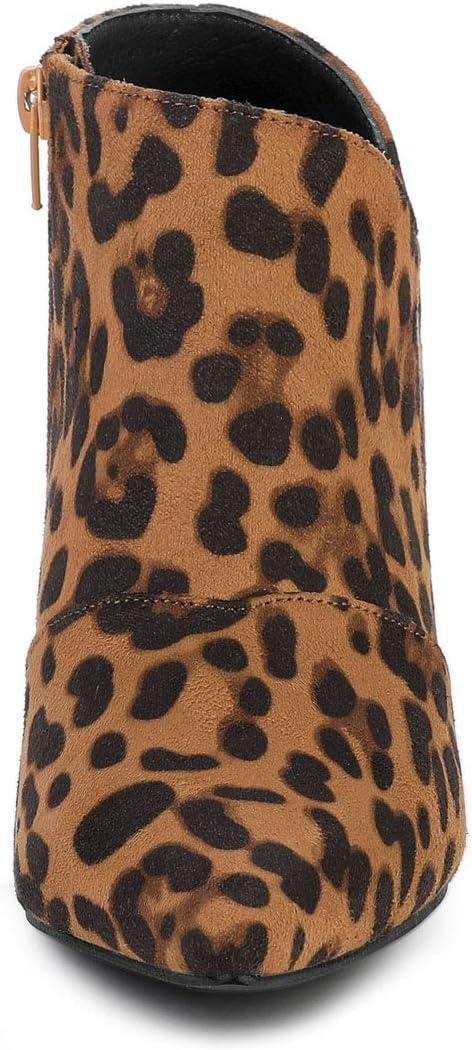 Allegra K Women’s Pointed Toe Kitten Heel Cutout Ankle Boots(Leopard)
