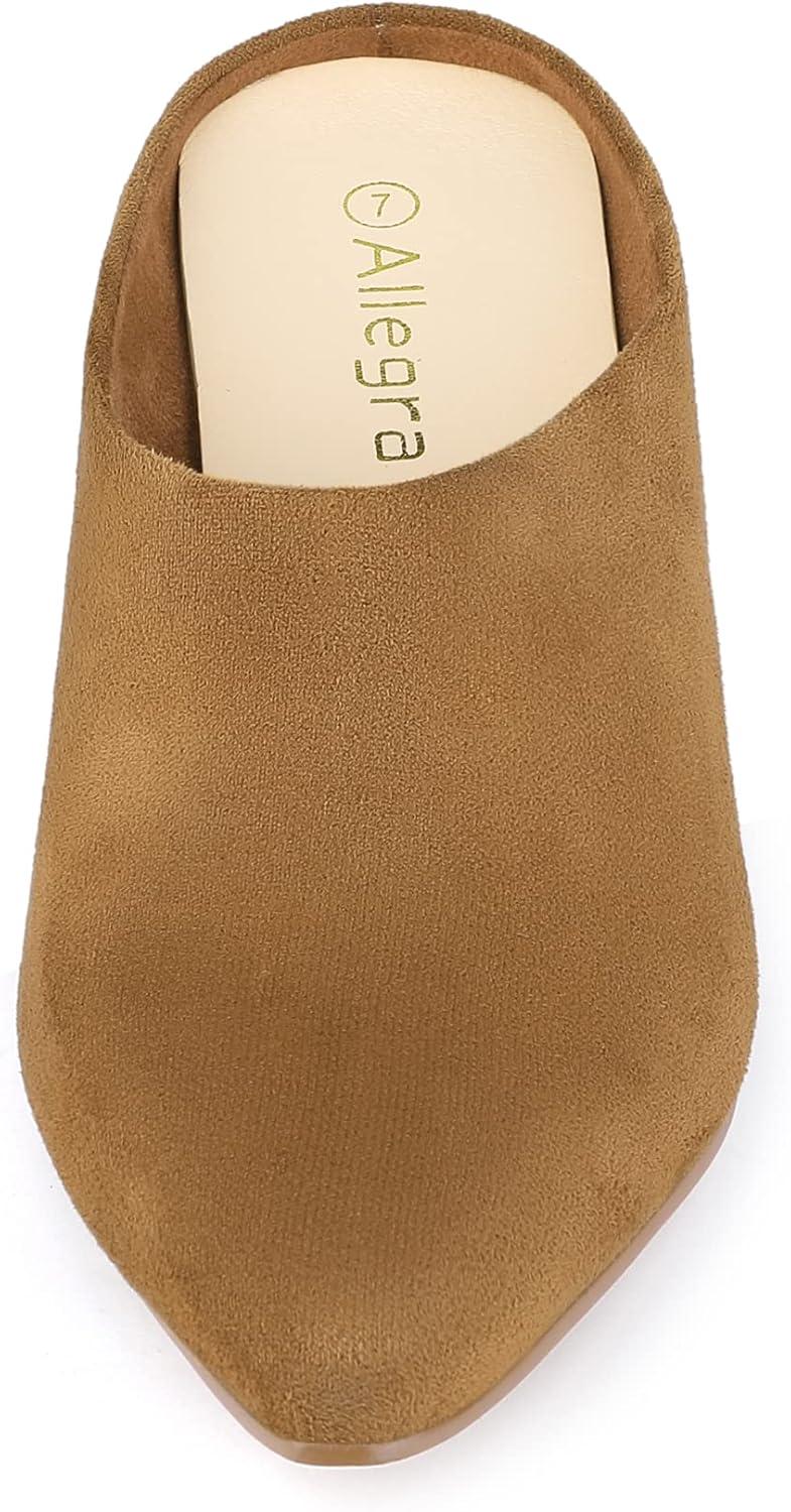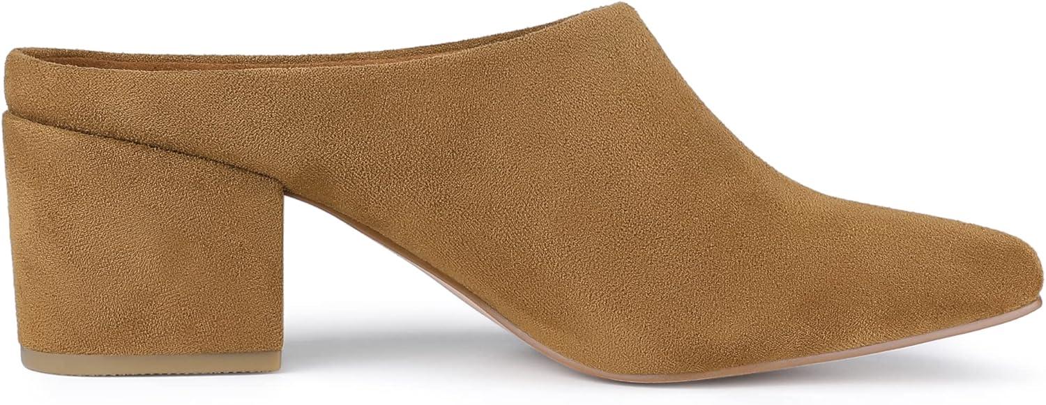 Allegra K Women’s Pointed Toe Slip on Block Heel Slide Mules(Brown)