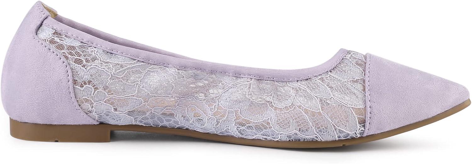 Allegra K Women’s Pointed Toe Slip On Mesh Flats(Purple Flower)