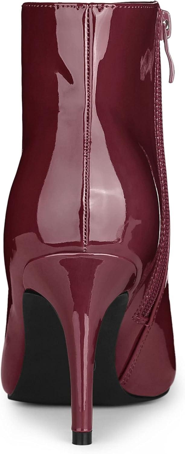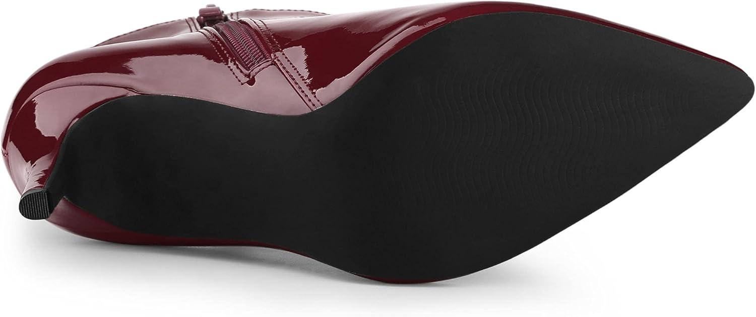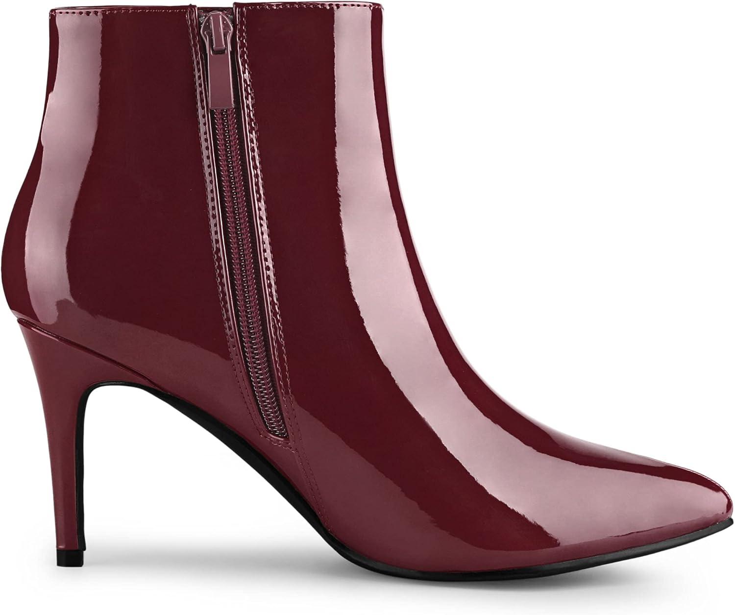 Allegra K Women’s Pointed Toe Stiletto Heel Ankle Heeled Boots(Burgundy)