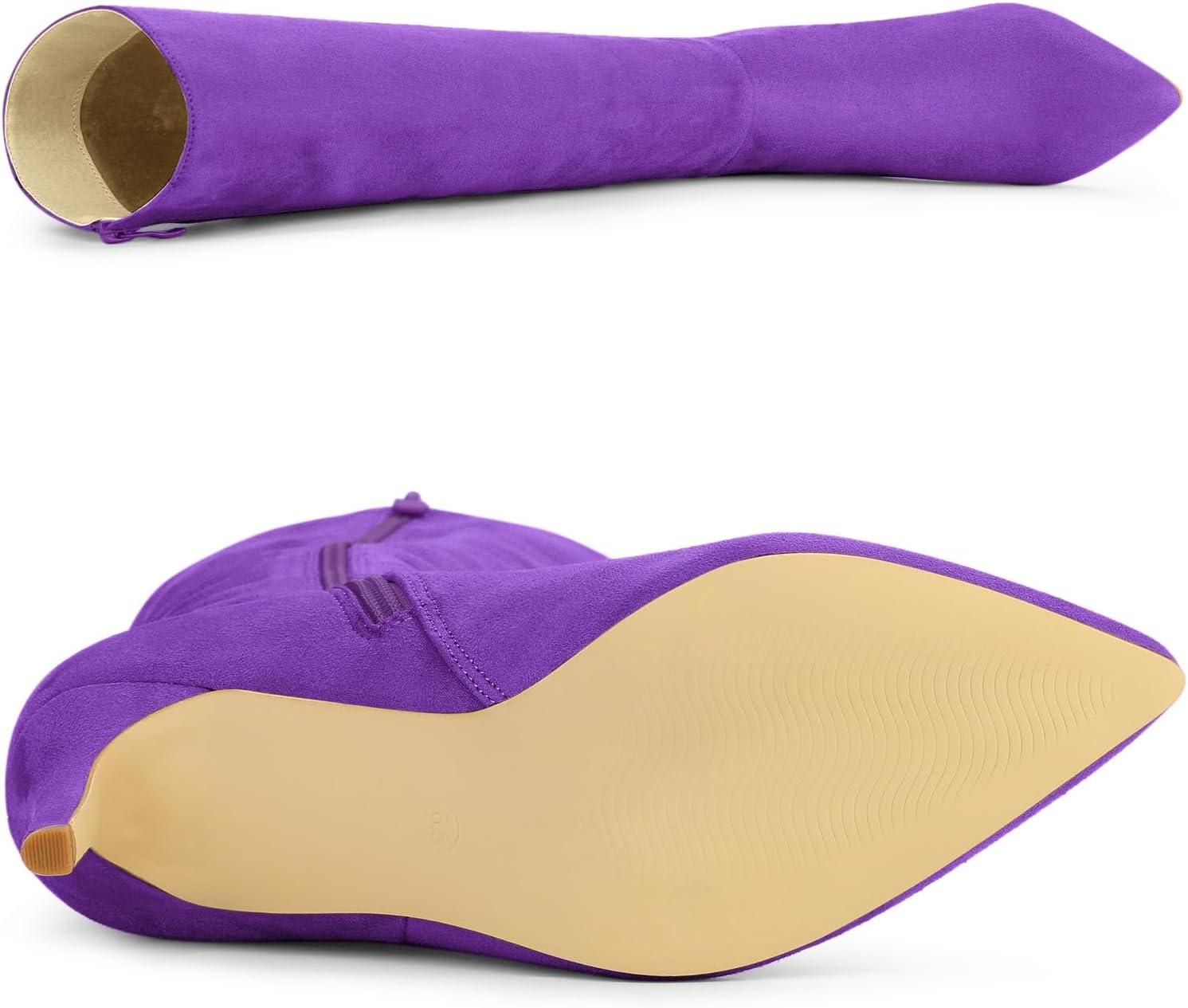 Allegra K Women’s Pointed Toe Stiletto Heels Knee High Boot(Purple)
