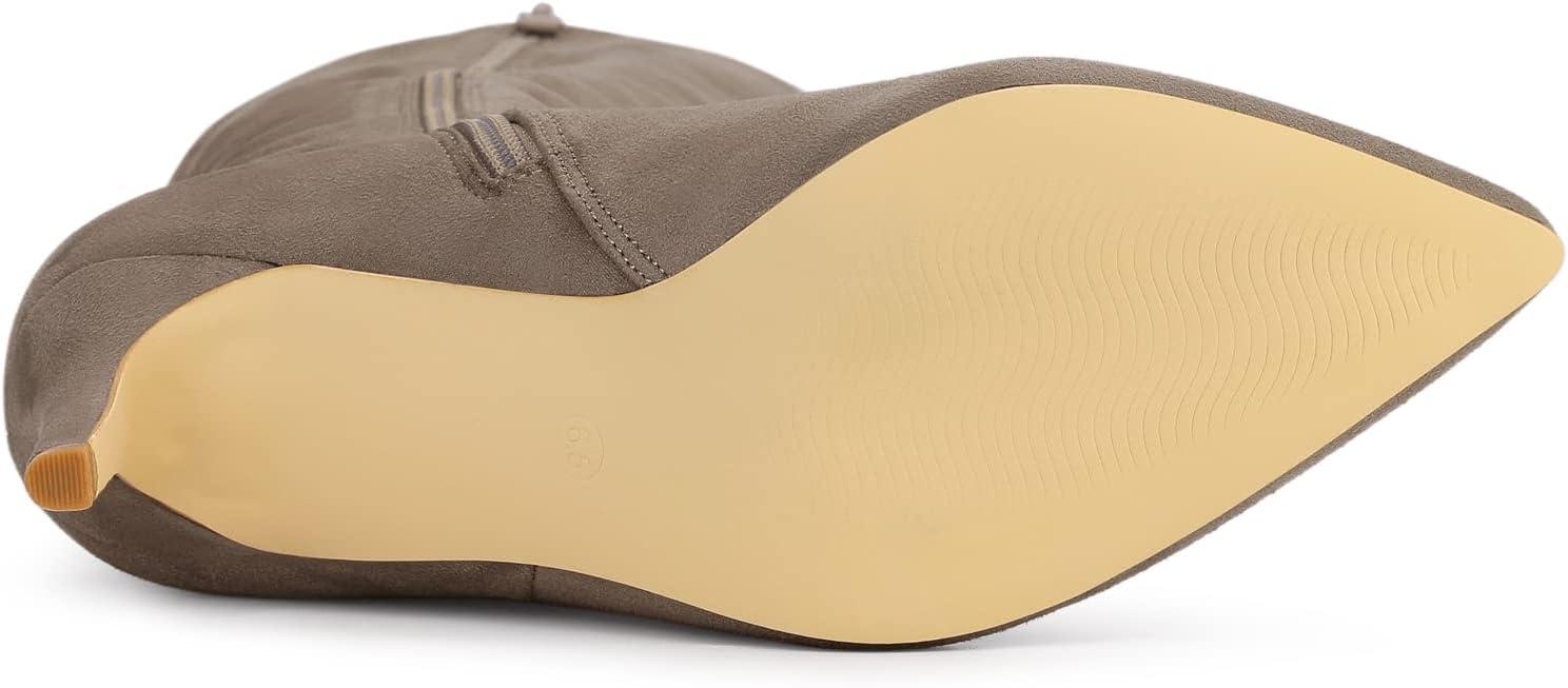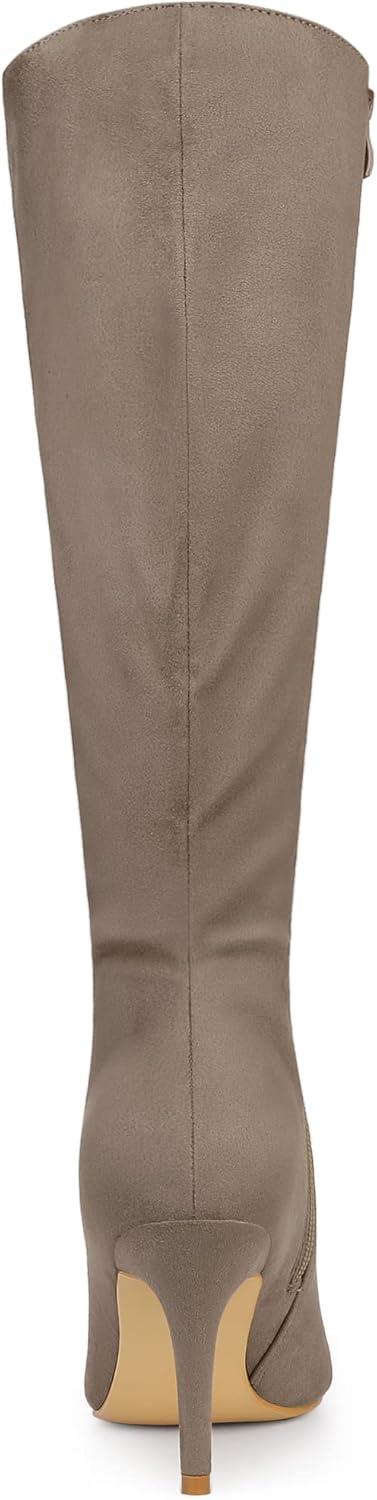 Allegra K Women’s Pointed Toe Stiletto Heels Knee High Boot(Taupe)
