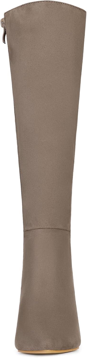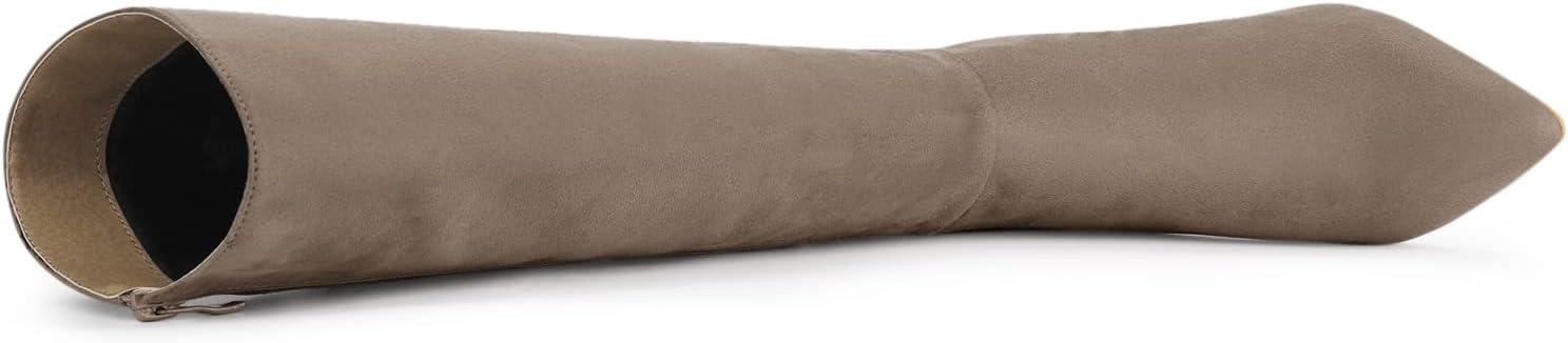 Allegra K Women's Pointed Toe Stiletto Heels Knee High Boot(Taupe)
