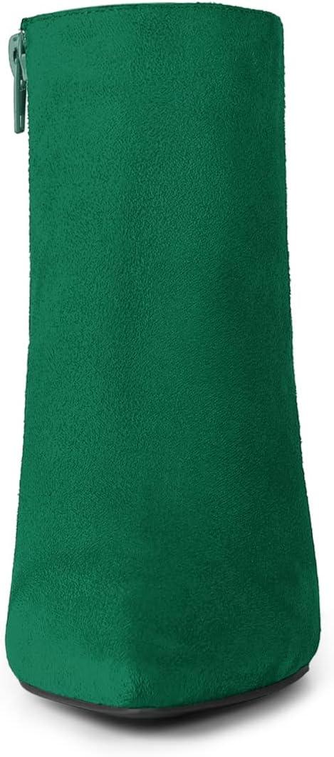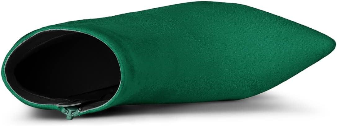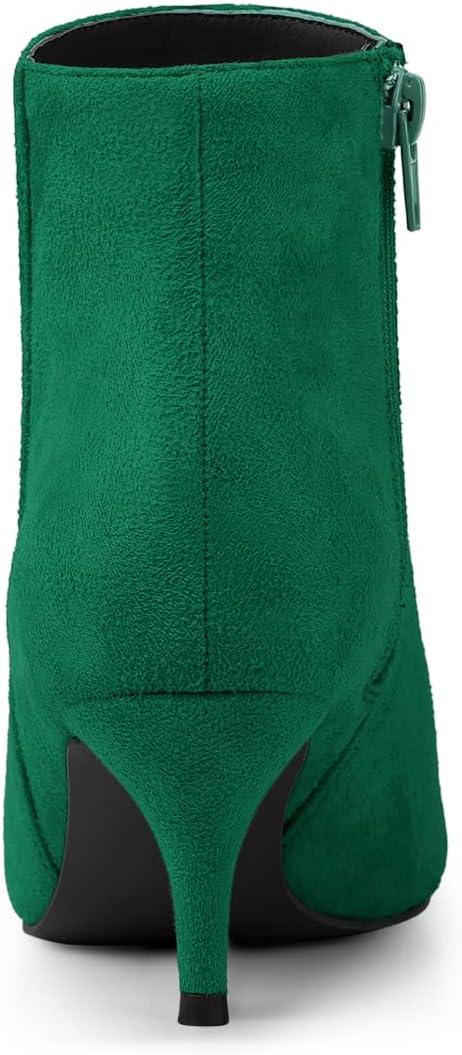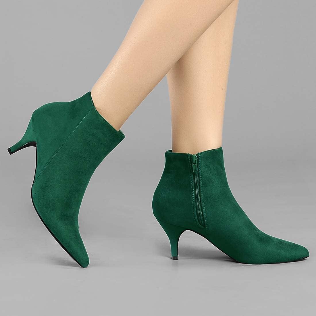 Allegra K Women’s Pointed Toe Zip Stiletto Kitten Heel Ankle Booties(Emerald Green)