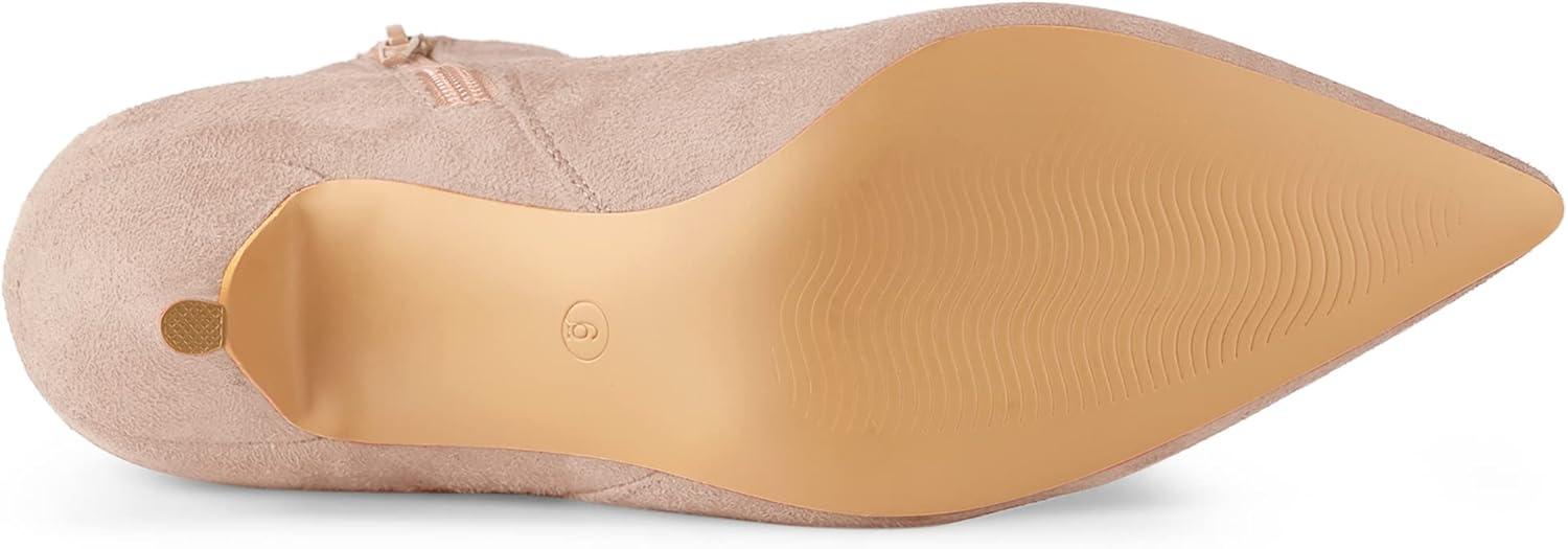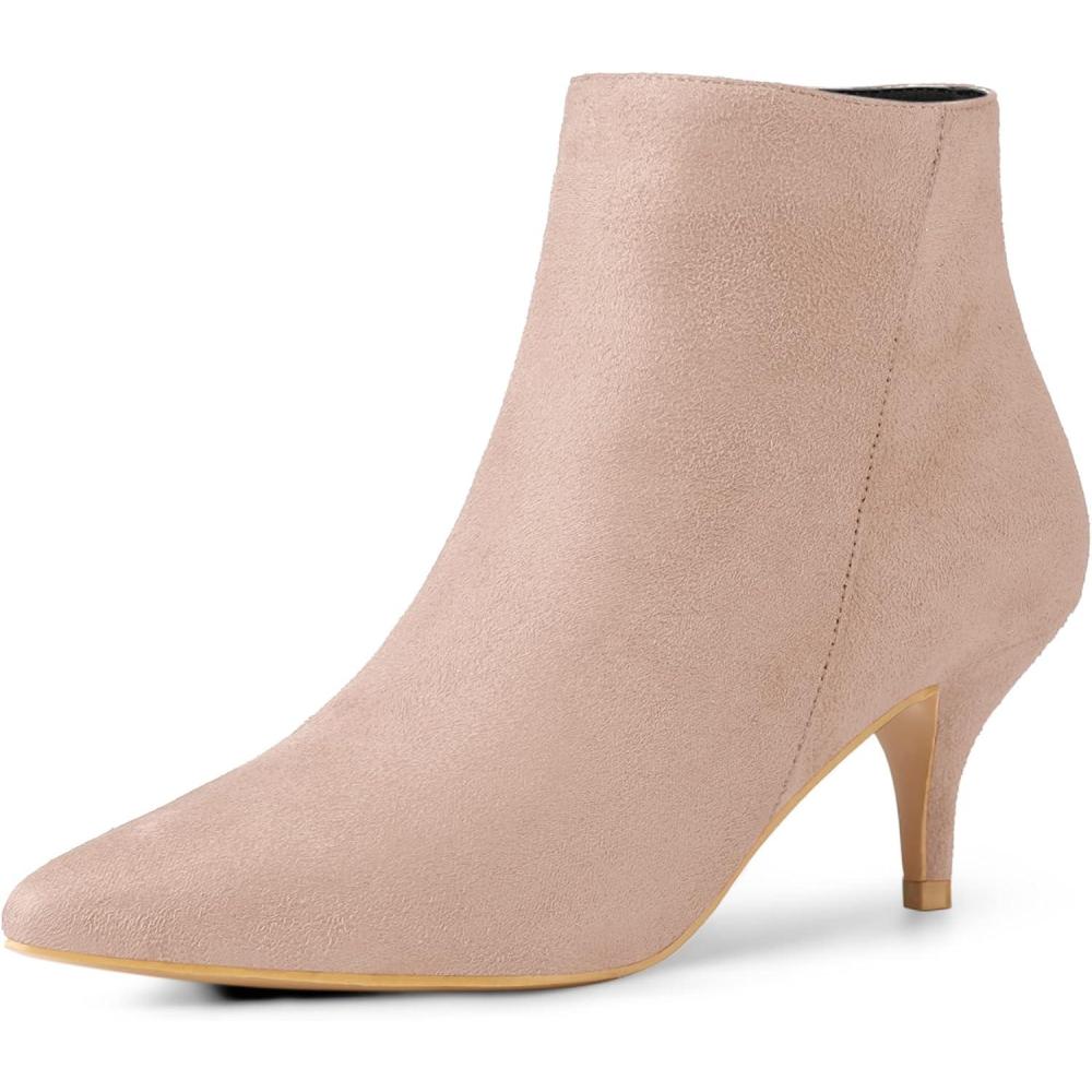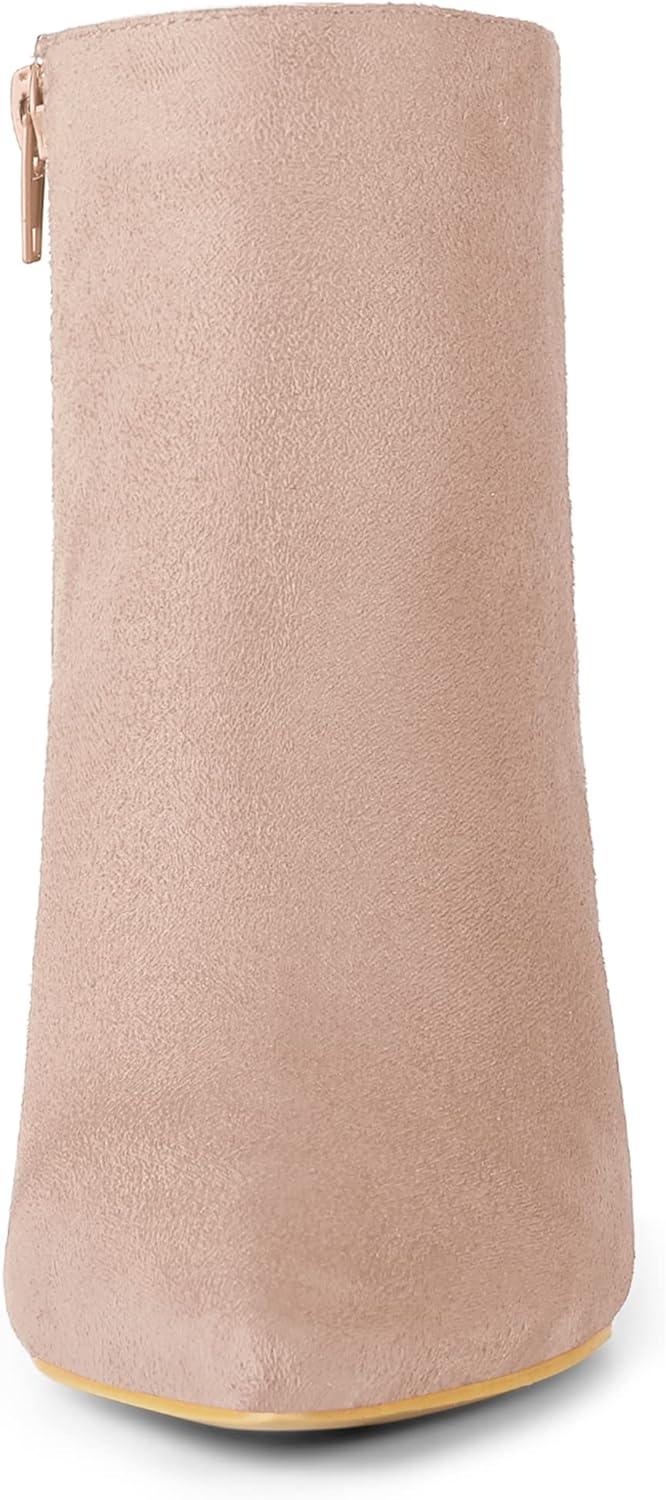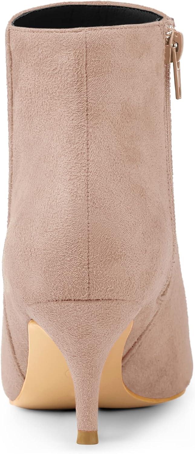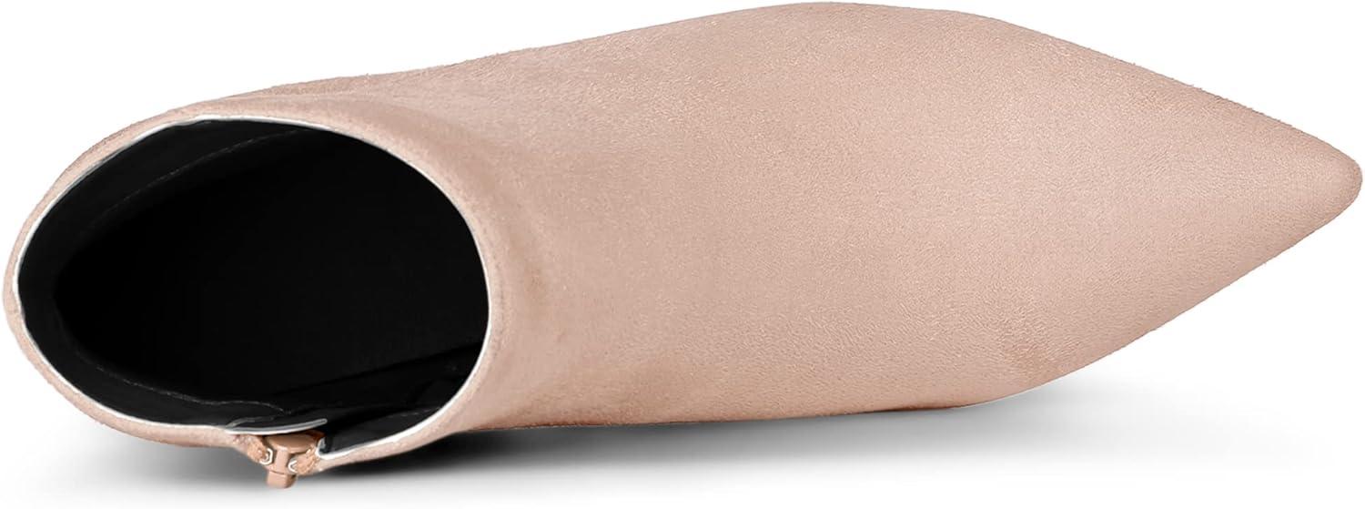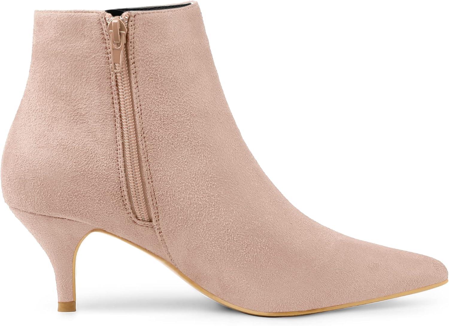 Allegra K Women’s Pointed Toe Zip Stiletto Kitten Heel Ankle Booties(Nude)