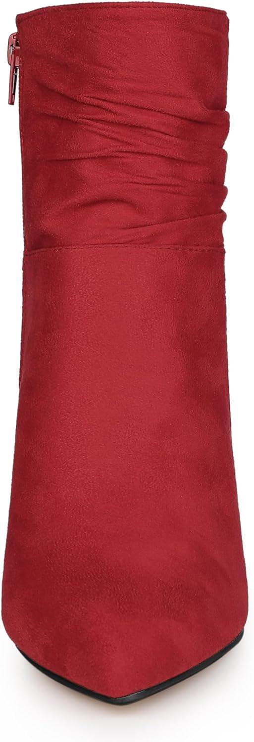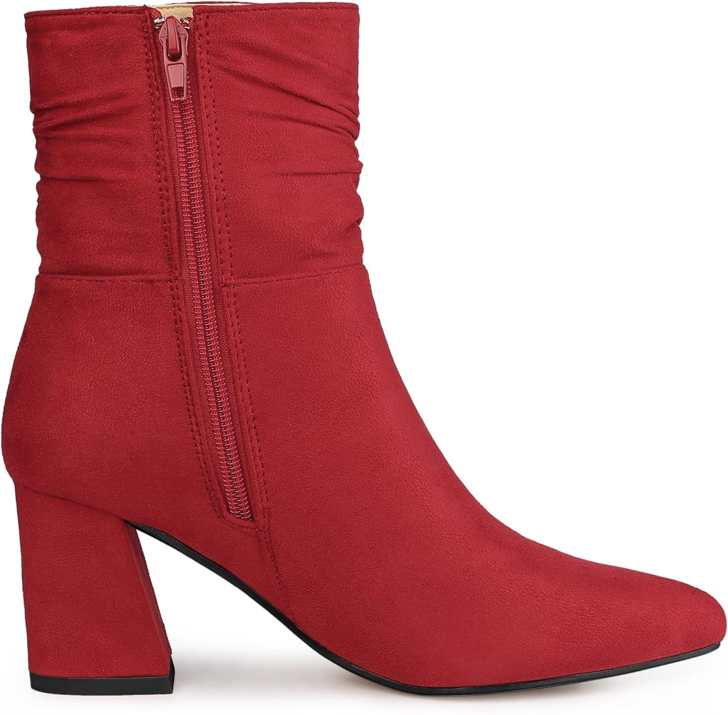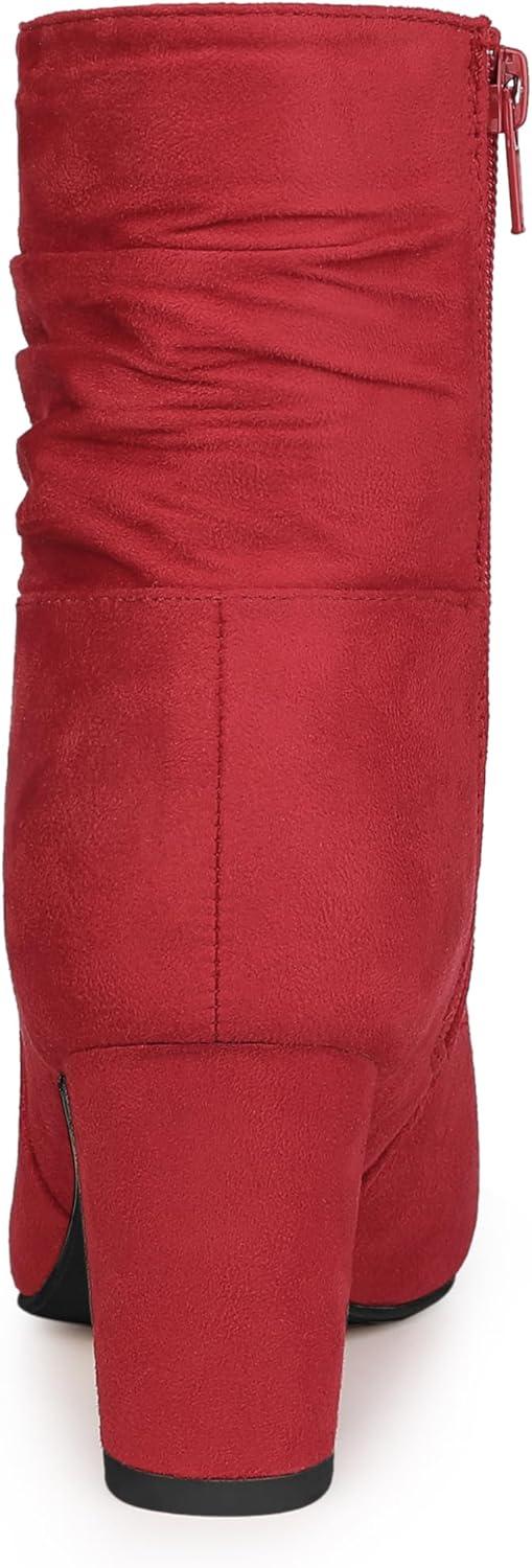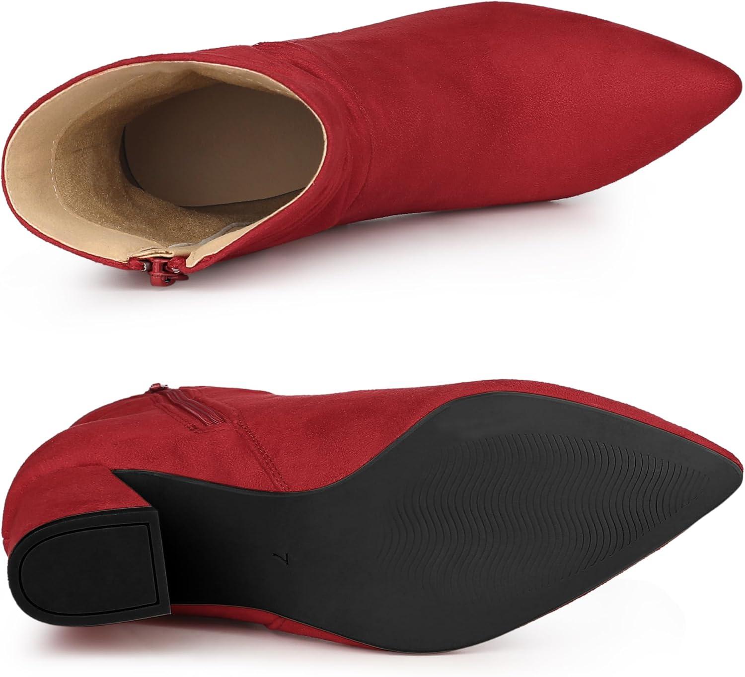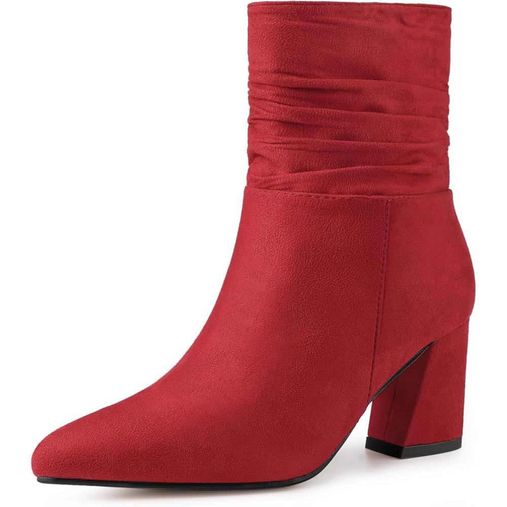 Allegra K Women’s Pointy Toe Slouched Zipper Chunky Heel Ankle Boots(Red)