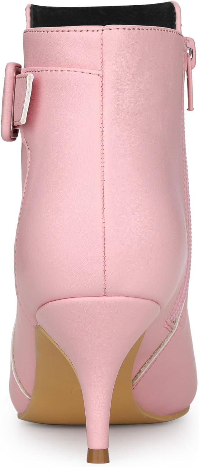 Allegra K Women’s Pointy Toe Zipper Buckle Decor Kitten Heels Ankle Boots(Pink)