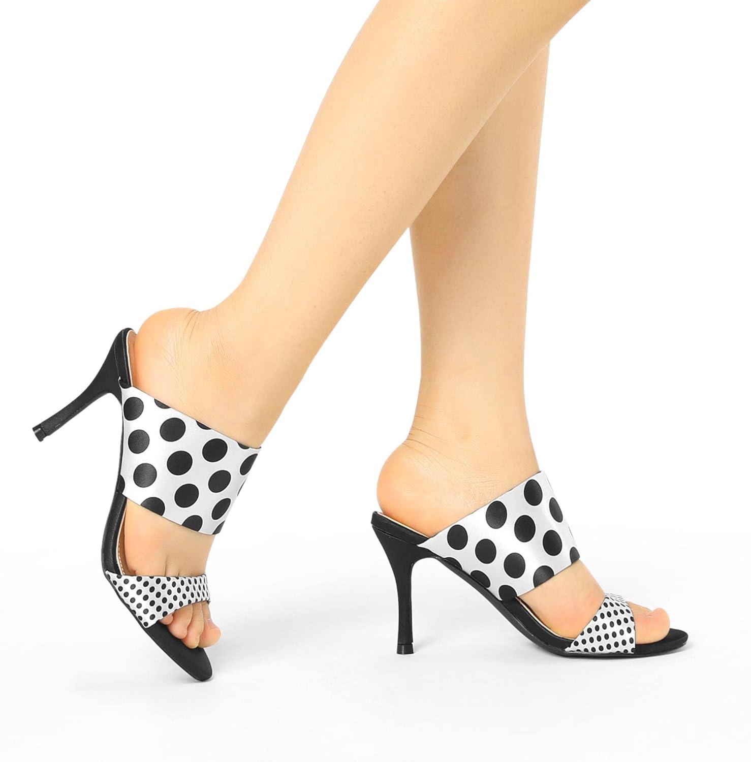 Allegra K Women’s Polka Dots Stiletto Heel Slides Sandals(Black)