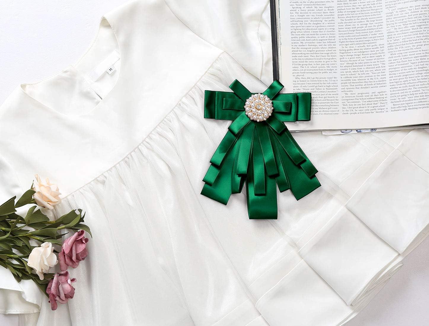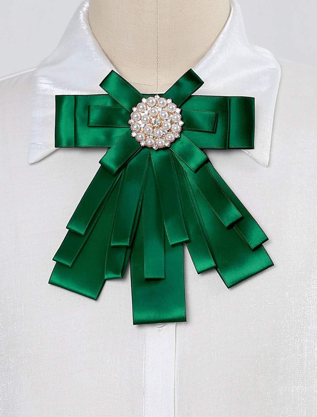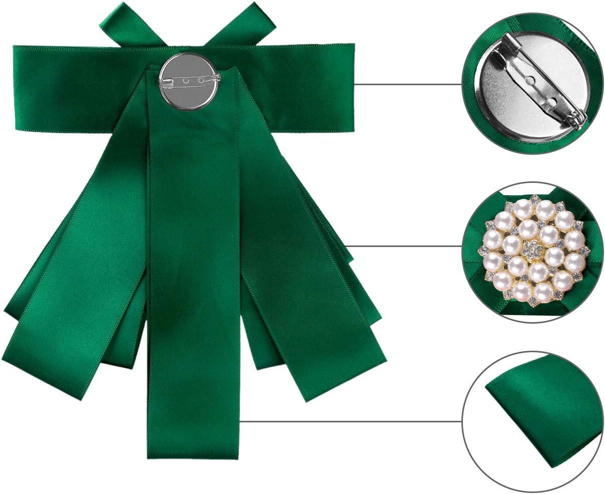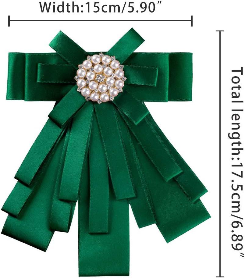 Allegra K Women’s Pre-tied Bowknot Beads Bow Tie Elegant Large Ribbon Brooch(Deep Green)