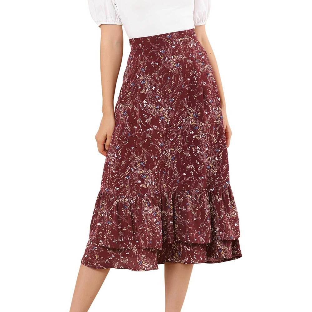 Get up to 70% off on Allegra K Women’s Printed Skirt 2025 Weekend Trendy Summer Chiffon Ruffle Tiered Flowy Midi Skirts(Wine Red-floral) styles during our end-of-season clearance event.
