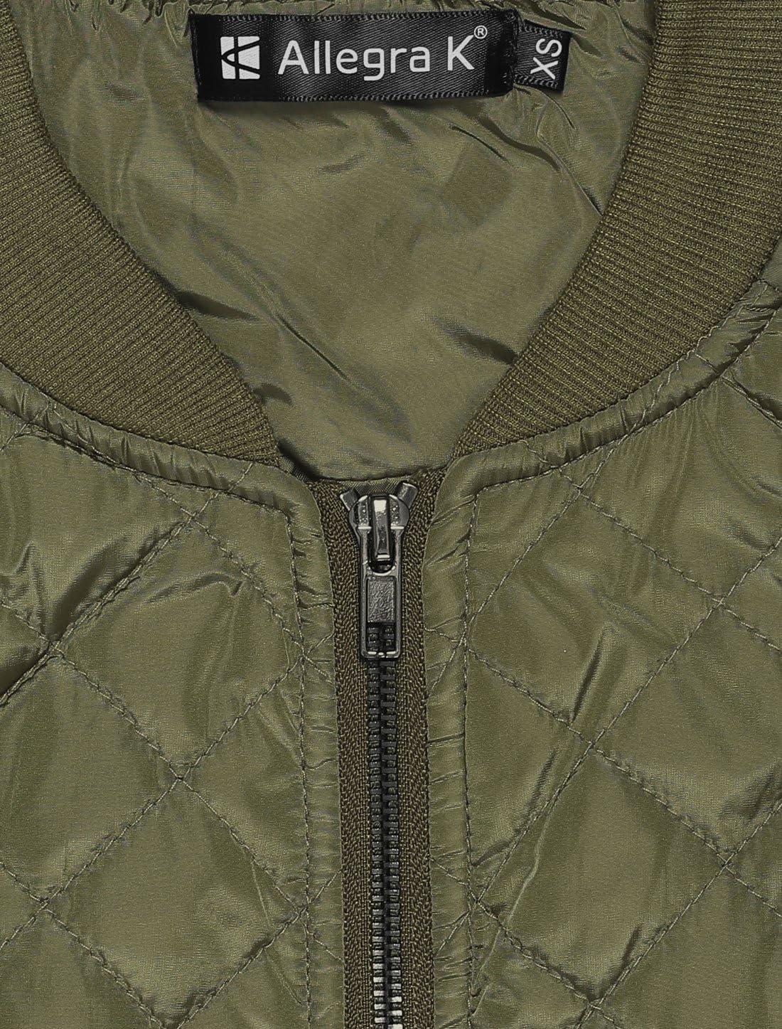 Allegra K Women’s Quilted Zip Up Raglan Long Sleeve Bomber Jacket(Green)