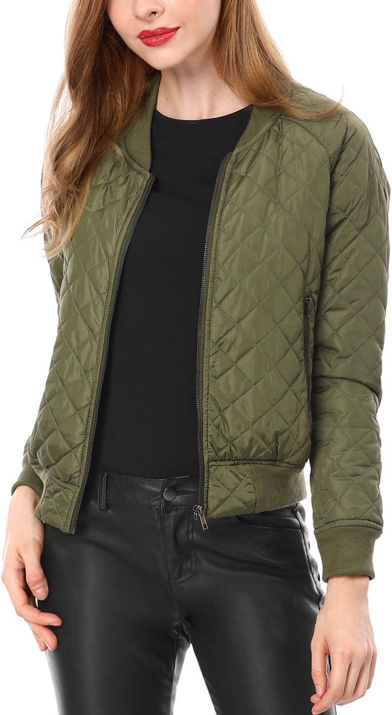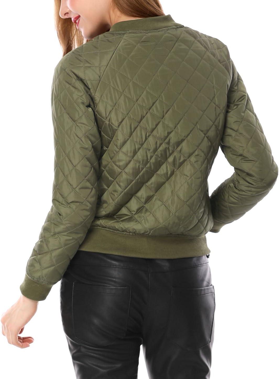 Allegra K Women's Quilted Zip Up Raglan Long Sleeve Bomber Jacket(Green)