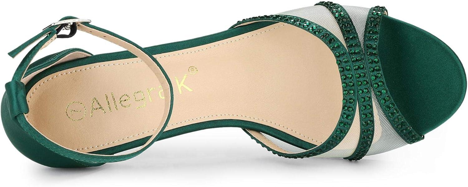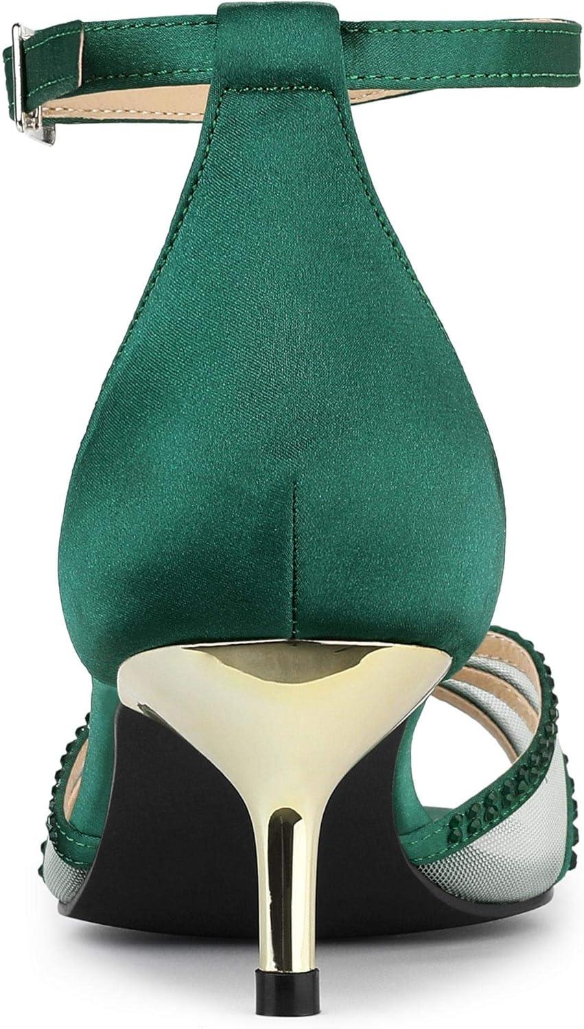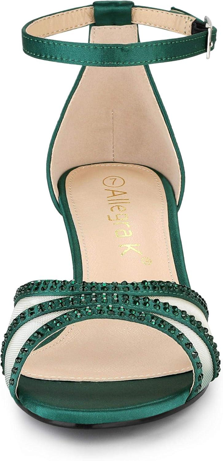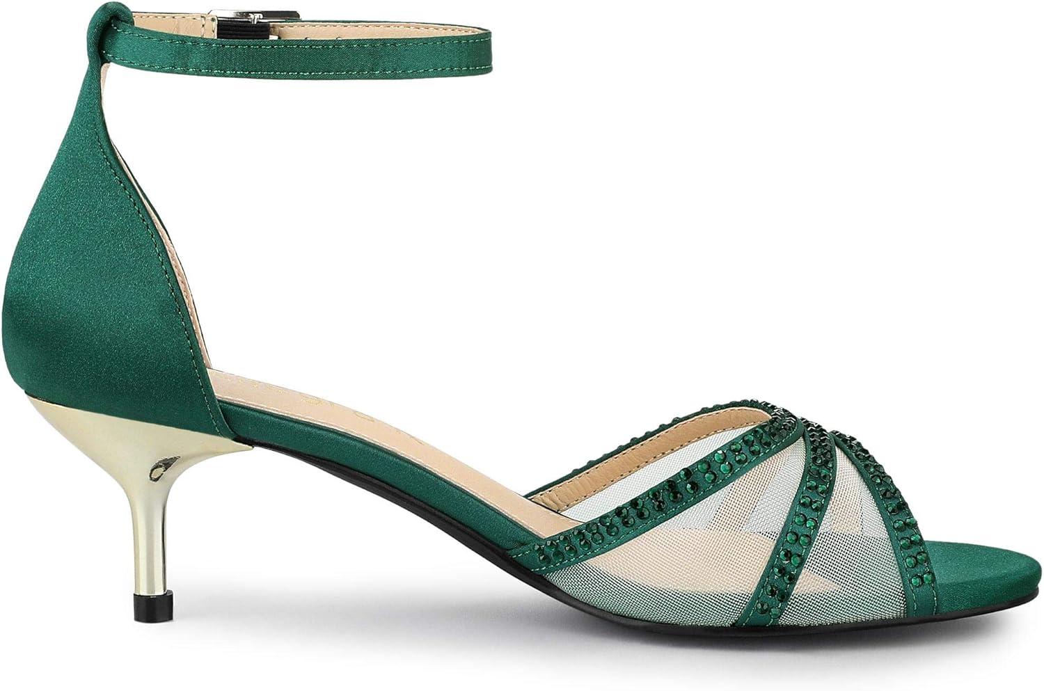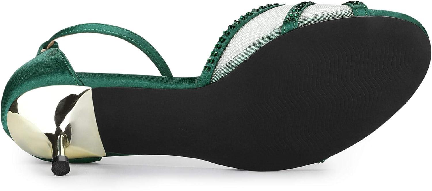 Allegra K Women’s Rhinestone Mesh Kitten Heels Sandals(Dark Green)