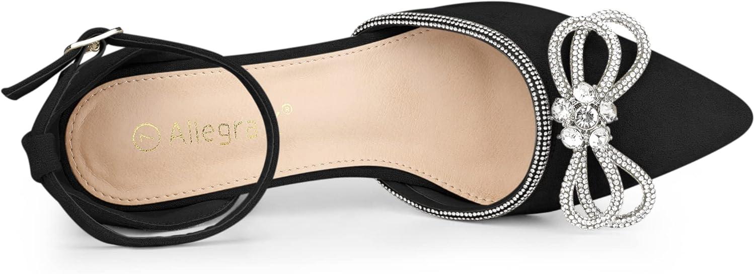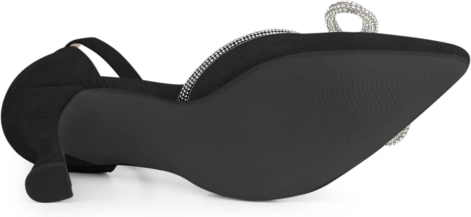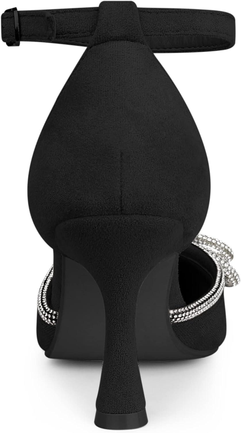 The sparkle bow of crystal around the toe cap and the design of pointy-toe pumps that are worthy of a red-carpet moment. The ankle strap is designed so that your shoes won't slip off easily when you walk.