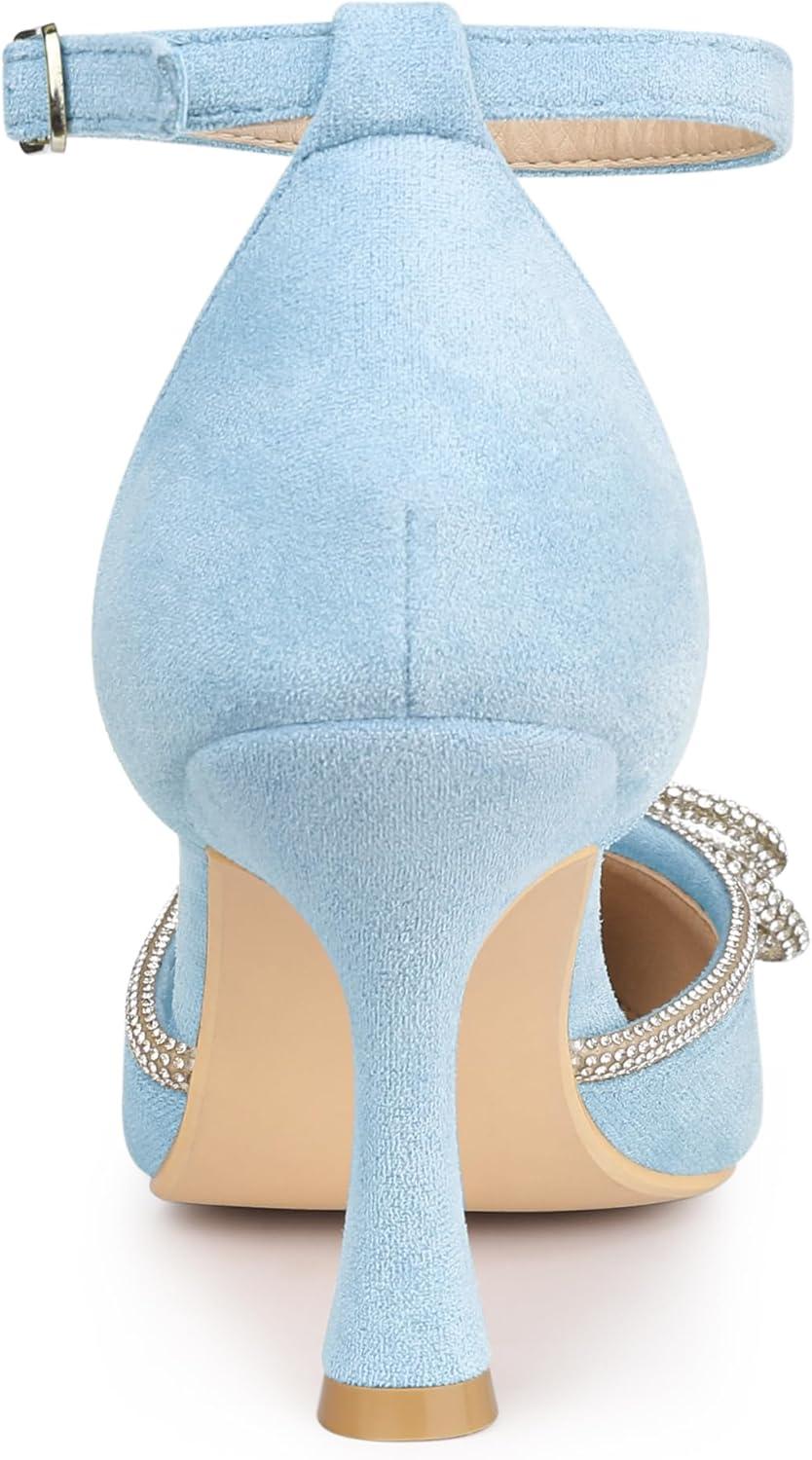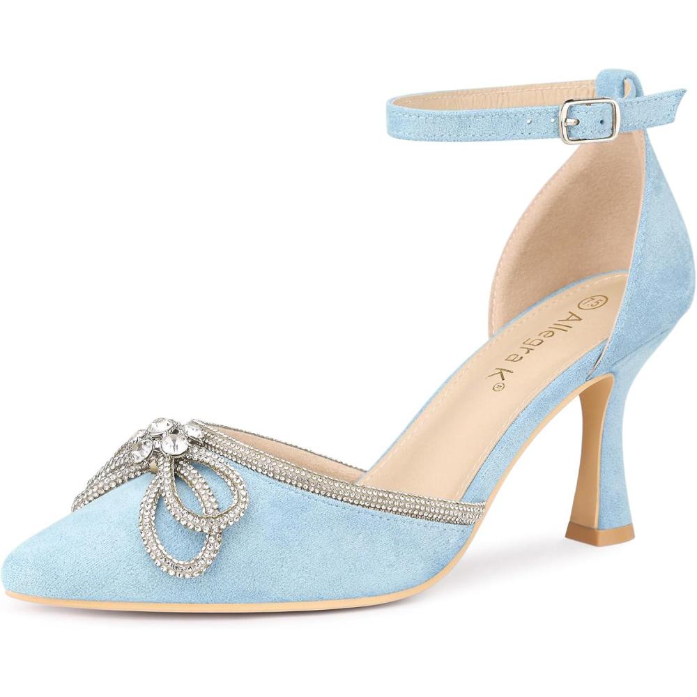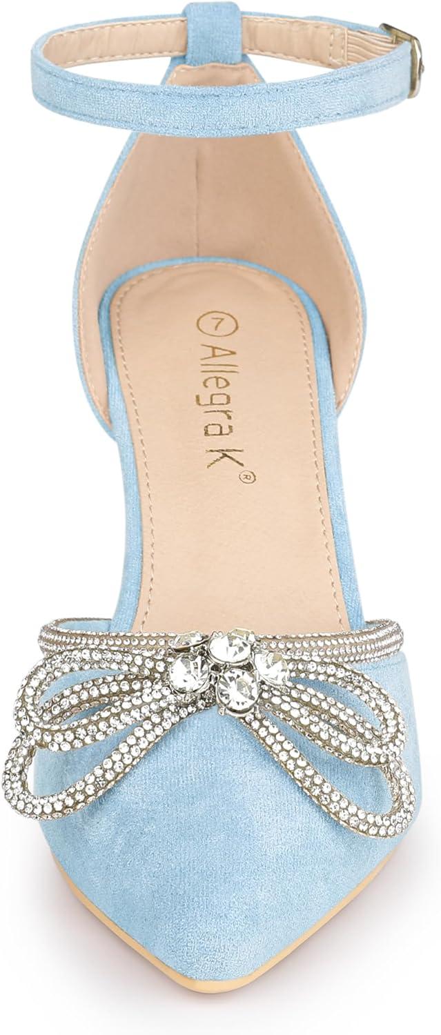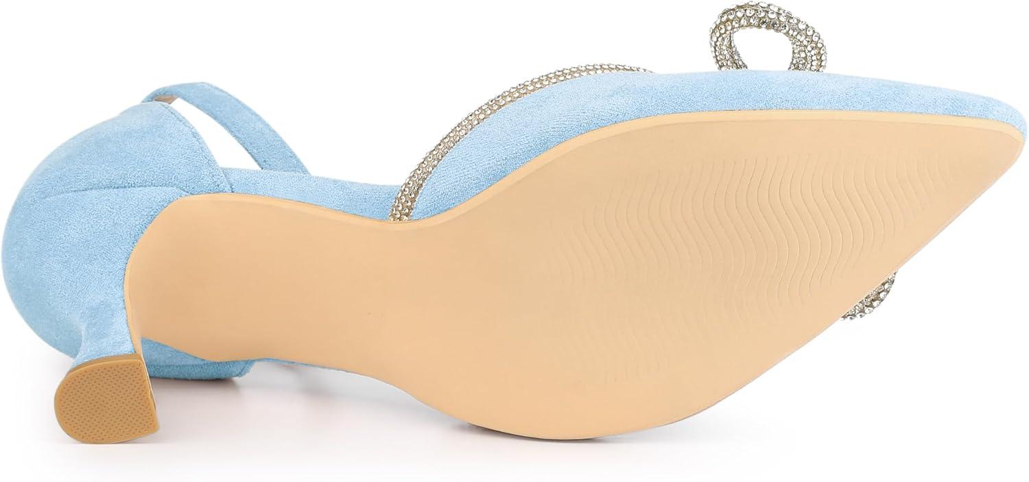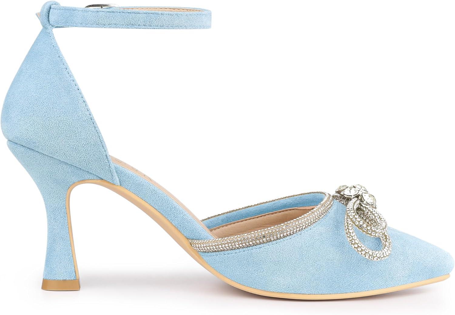 Allegra K Women’s Rhinestones Bow Ankle Strap Stiletto Heel Sandals Pumps(Sky Blue)