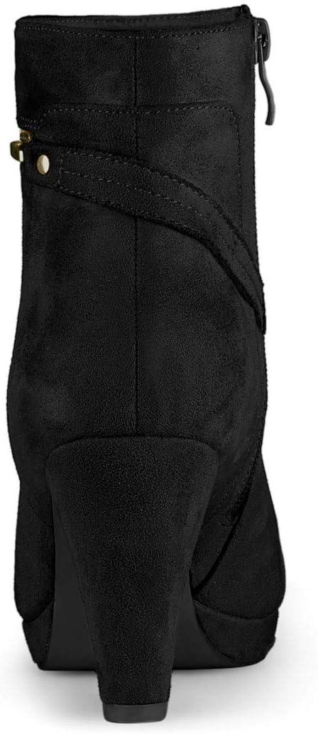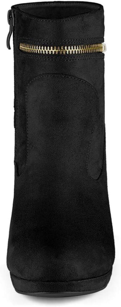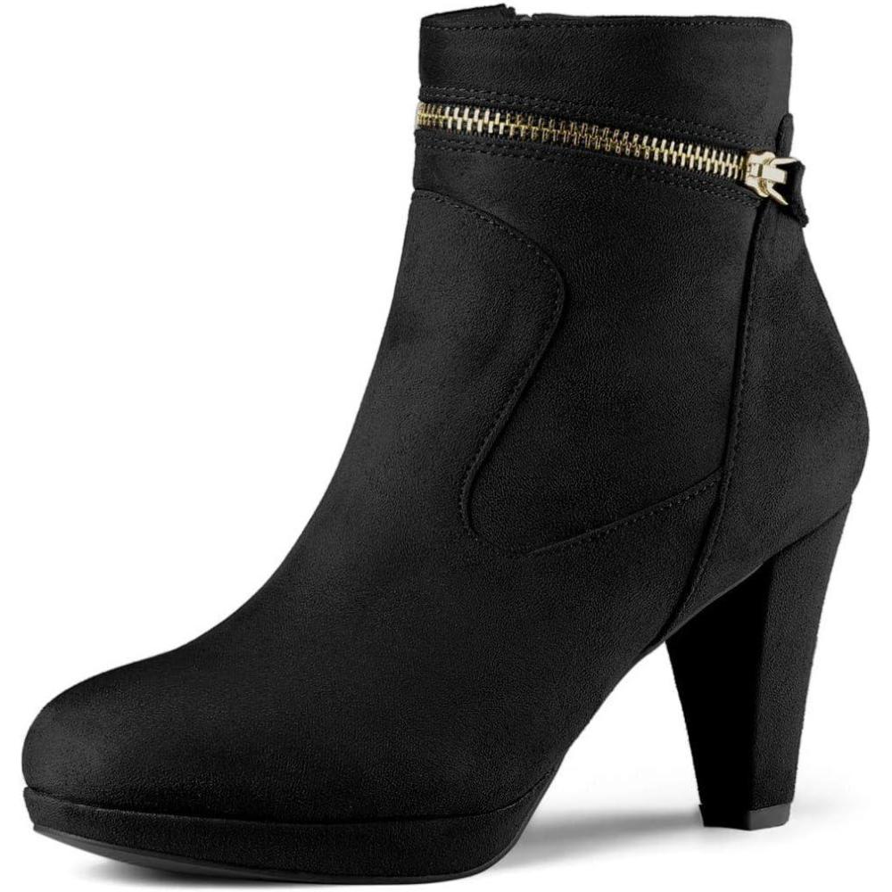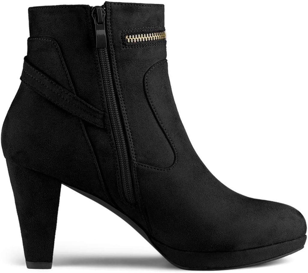 Allegra K Women’s Round Toe Ankle Mid Heel Boots(Black)