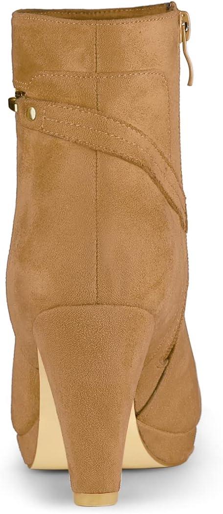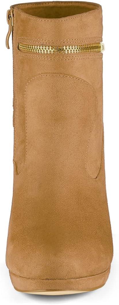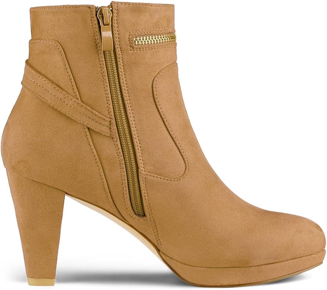Allegra K Women’s Round Toe Ankle Mid Heel Boots(Brown)
