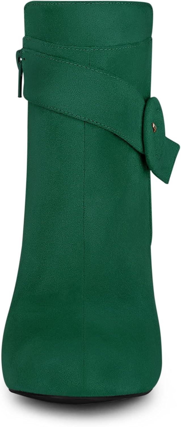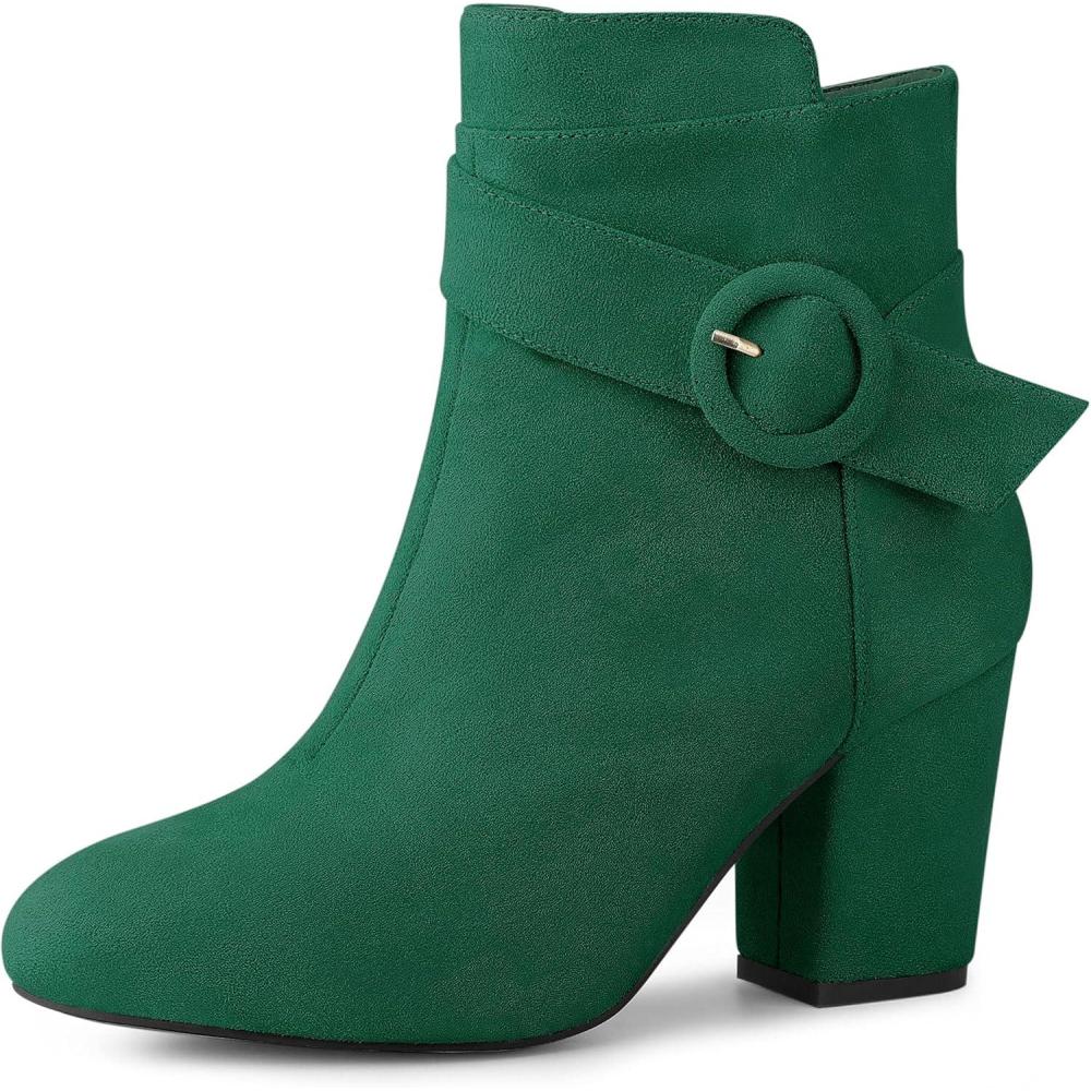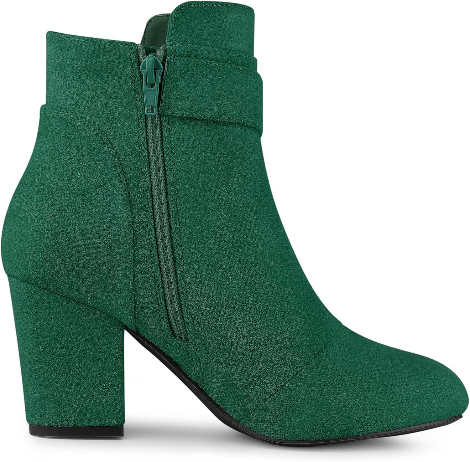 Allegra K Women’s Round Toe Block Heel Boots Ankle Booties(Emerald Green)