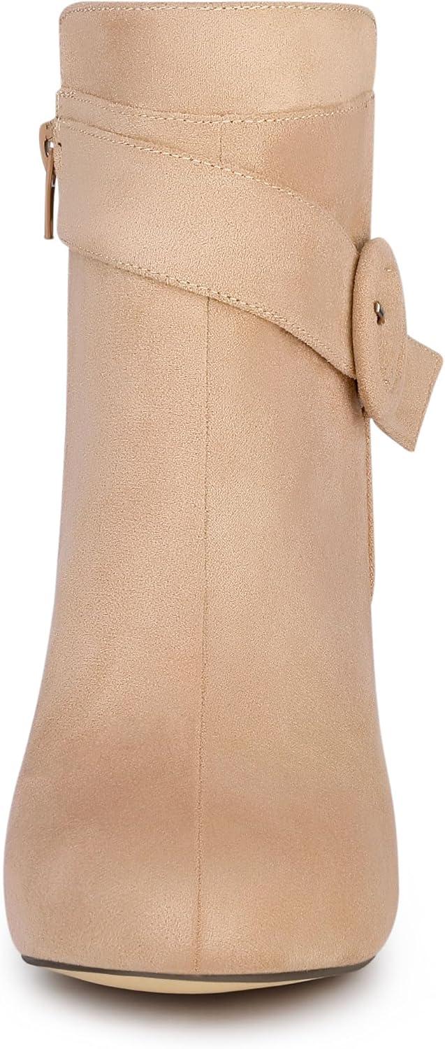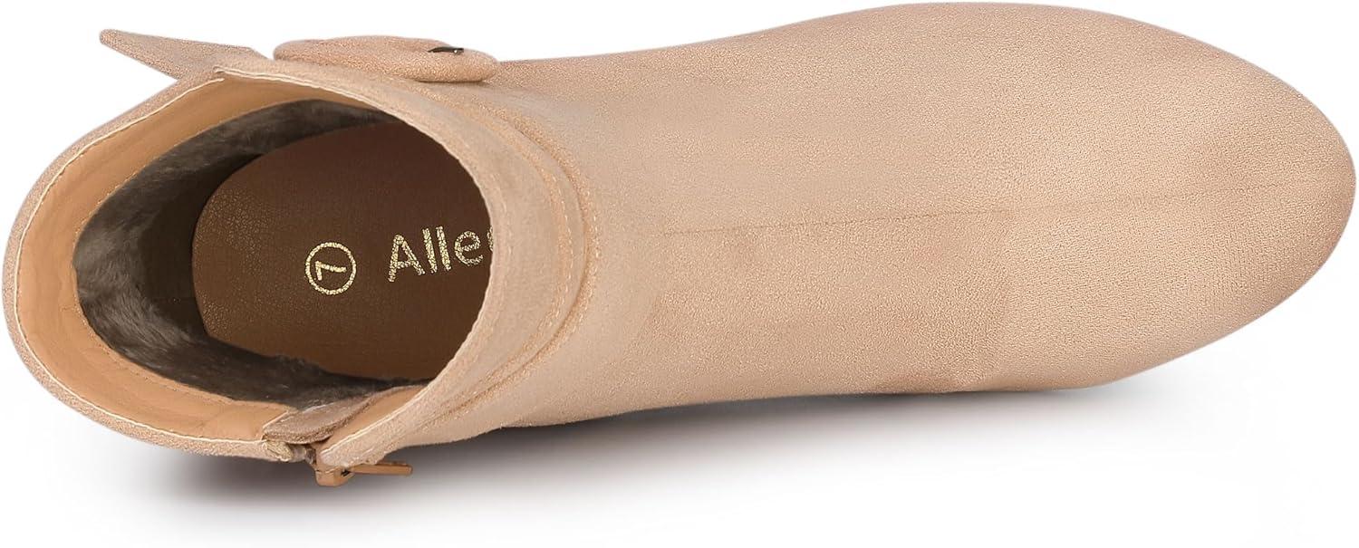 Allegra K Women’s Round Toe Block Heel Boots Ankle Booties(Nude)